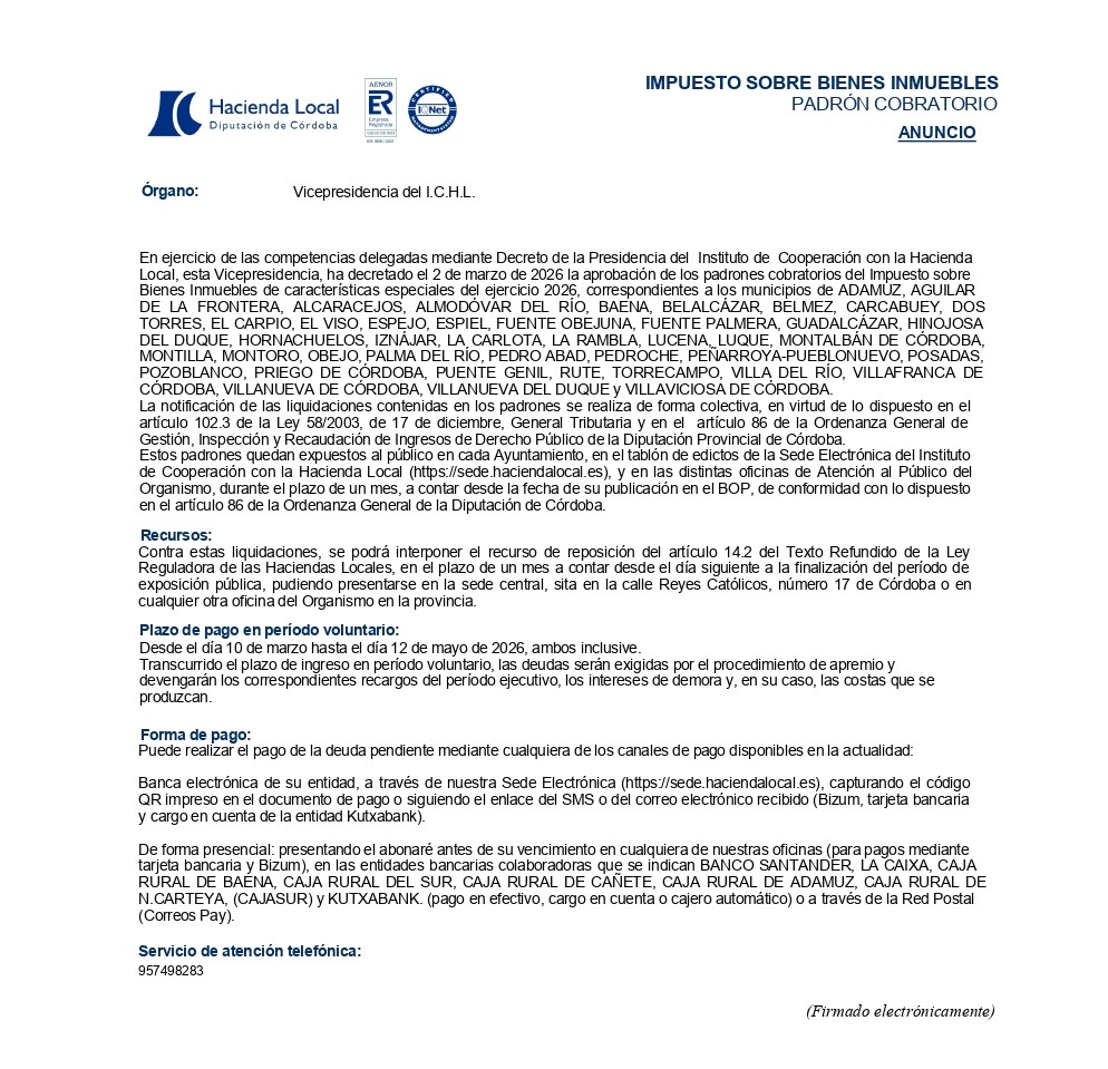 IMPUESTO SOBRE BIENES INMUEBLES DE CARACTERÍSTICAS ESPECIALES (IBI BICES) 2026