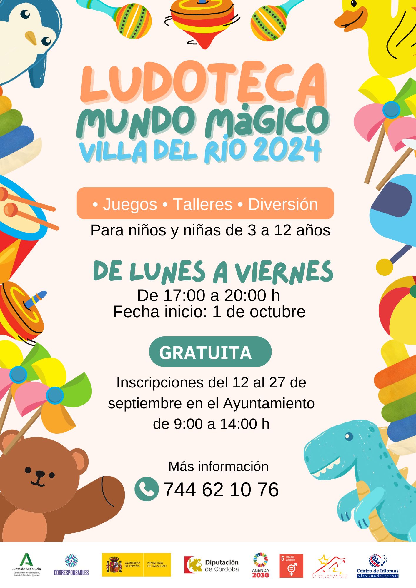 El área de Infancia del Ayuntamiento de Villa del Río organiza la ludoteca infantil "Mundo Mágico", actividad enmarcada en el programa "Córdoba, red de municipios por la conciliación y la corresponsabilidad 2.0" de la Diputación de Córdoba y el "Plan Corresponsables 2024" de la Junta de Andalucía, con el objetivo de establecer medidas destinadas a las familias para promover la conciliación y la igualdad.