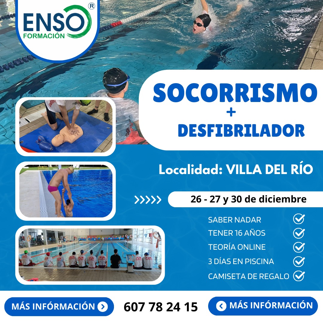 El área de Deportes del Ayuntamiento de Villa del Río comunica que próximamente se realizará en nuestra localidad un curso intensivo de Socorrismo en instalaciones acuáticas y desfibrilador, organizado por ENSO Formación, los días 26, 27 y 30 de diciembre.