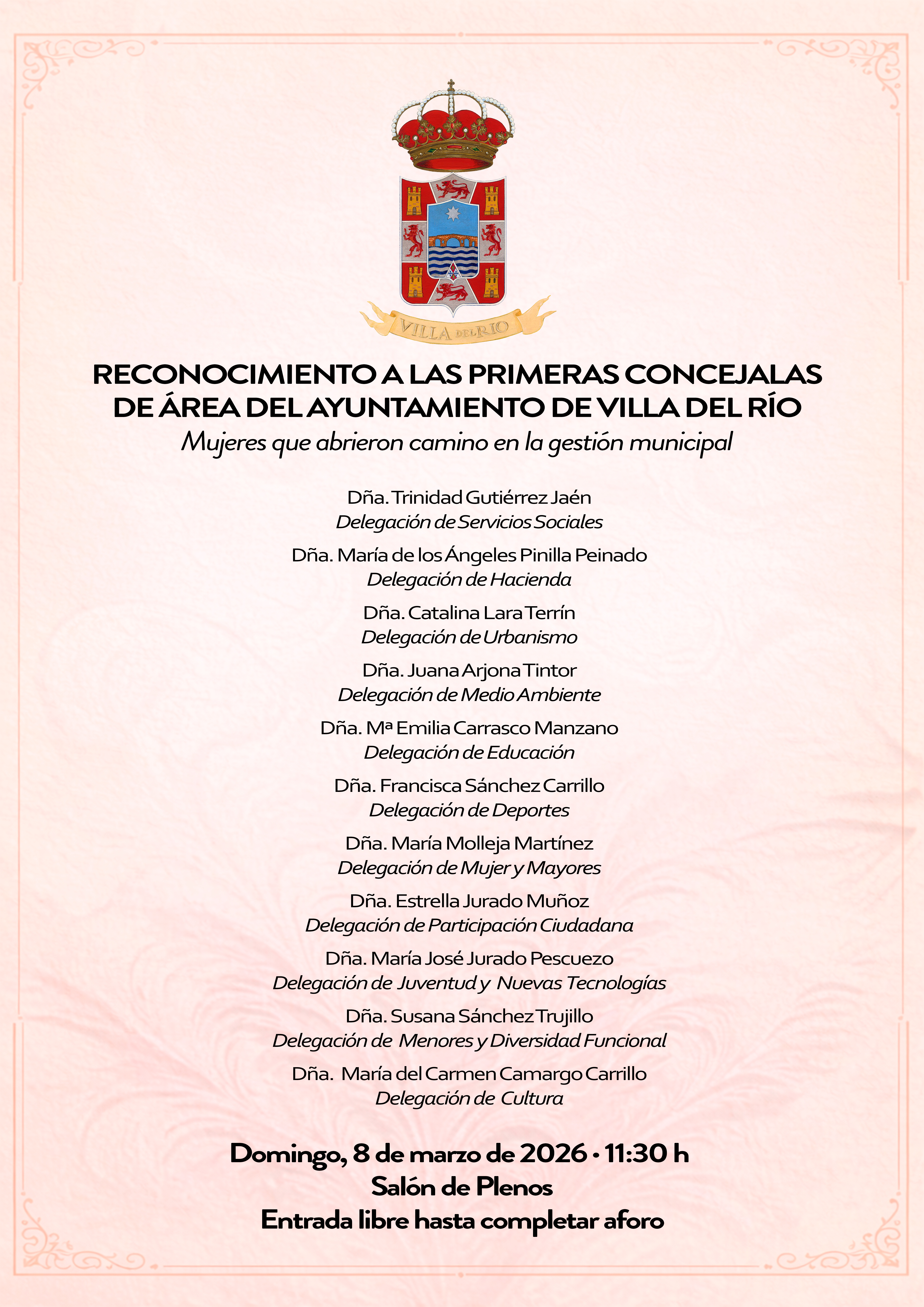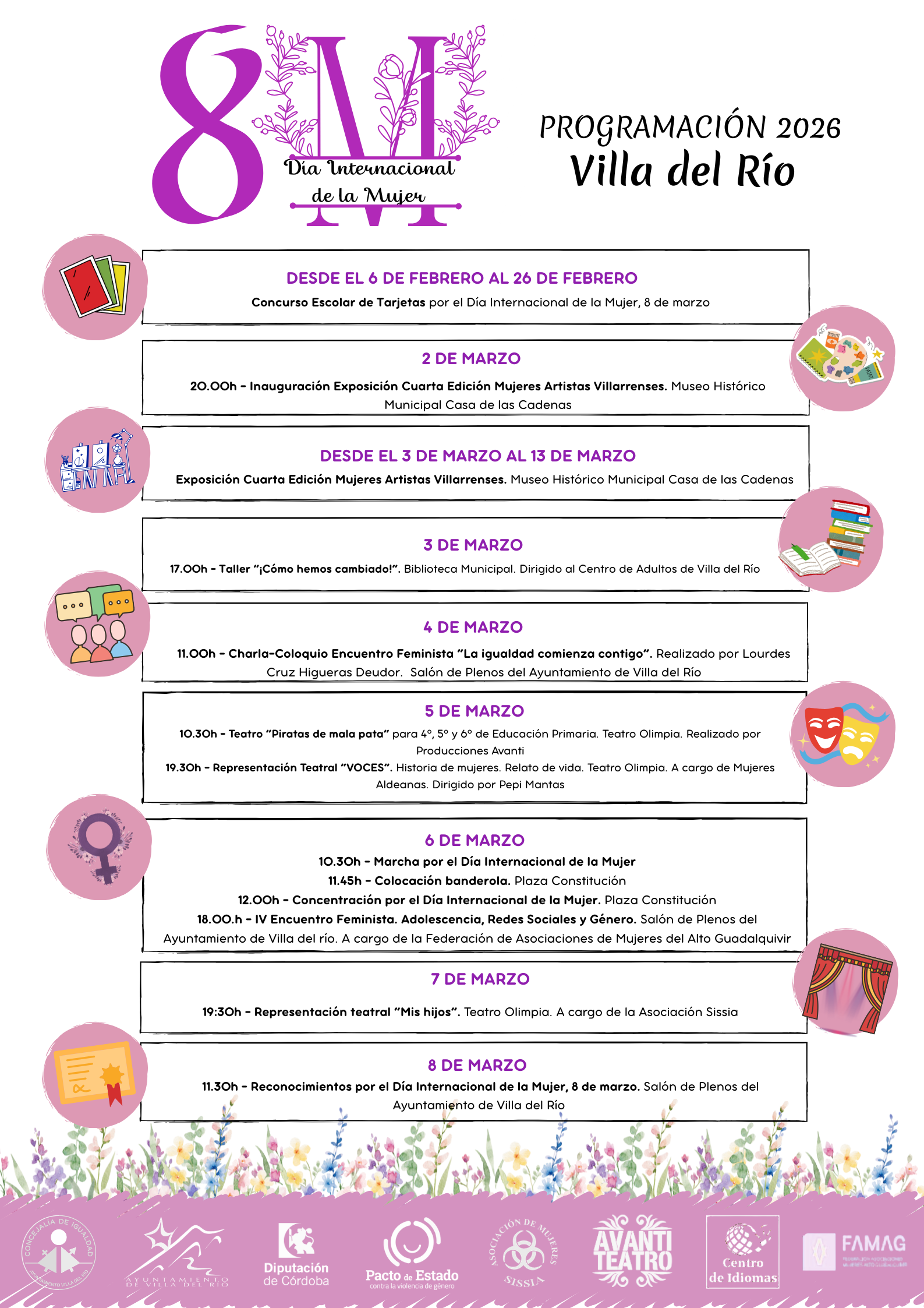 PROGRAMACIÓN DE ACTOS CON MOTIVO DEL DÍA INTERNACIONAL DE LA MUJER (8M) EN VILLA DEL RÍO 20262026-03-05 08:45:00Área de Igualdad