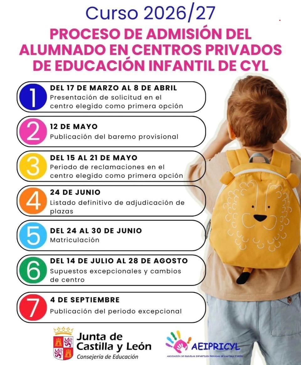 Del 17 de marzo al 8 de abril se encuentra abierto el plazo para solicitar la admisión de alumnos para la Escuela Infantil "El Trenecito". Las solicitudes podrán presentarse de forma presencial en el Ayuntamiento de 9:00 a 14:00 horas, de lunes a viernes, en las fechas señaladas o de forma electrónica en el portal de Educación de la Junta de Castilla y León: educa.jcyl.es.