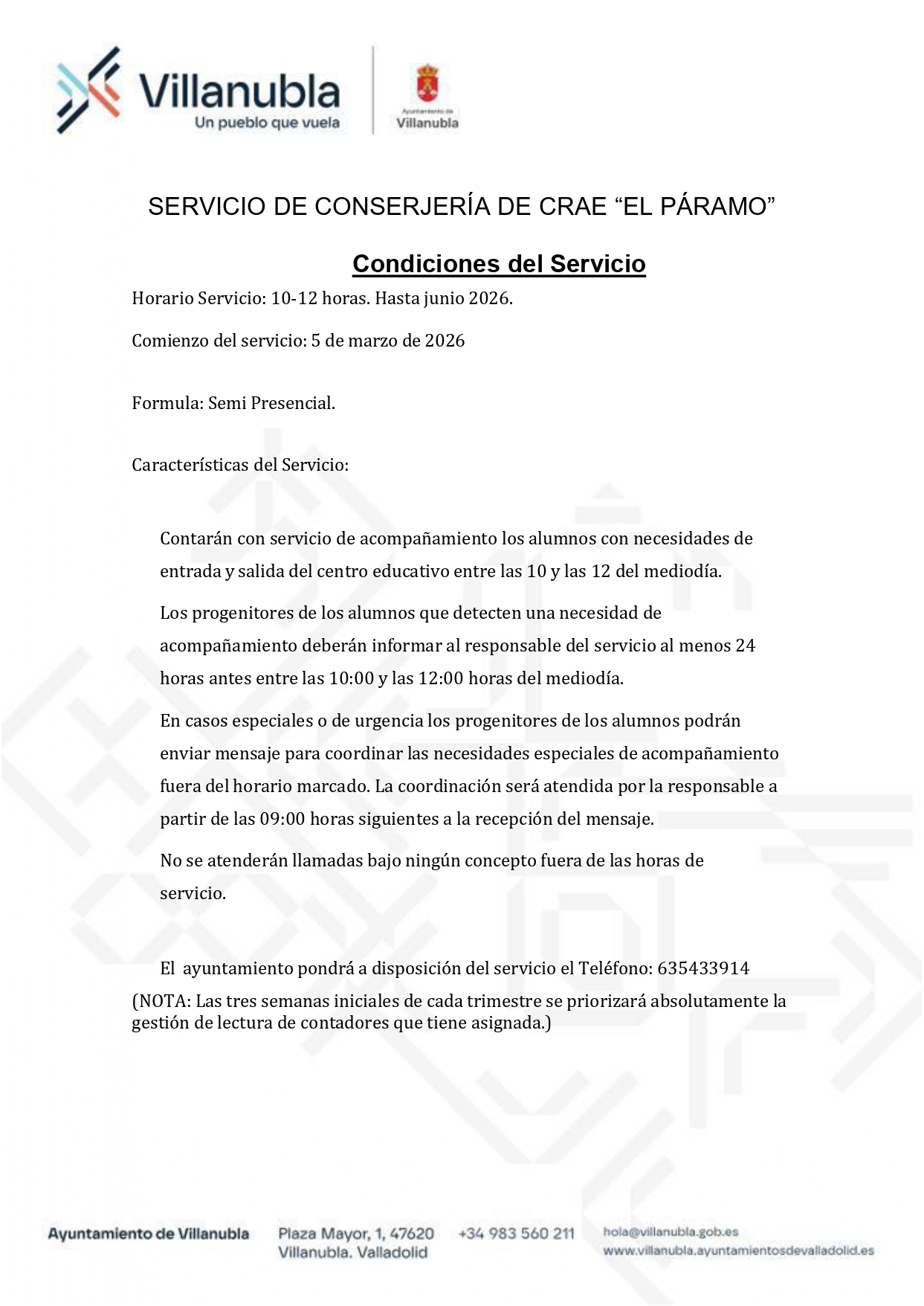 Teléfono de avisos: 983-560211