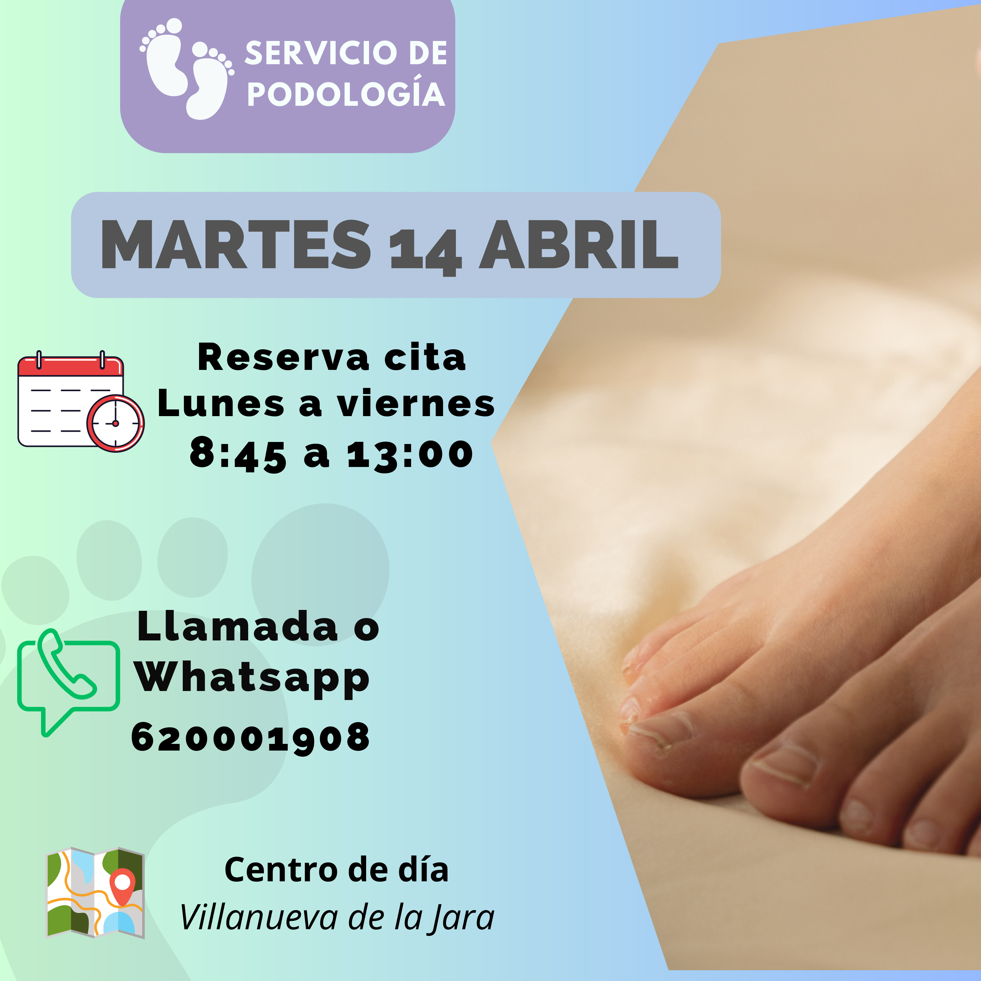 El próximo martes 14 de abril vuelve el servicio de podología al Centro de Día de Villanueva de la Jara.