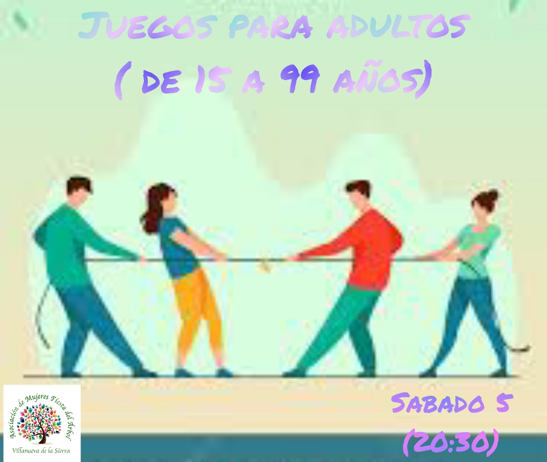 JUEGOS PARA ADULTOS ORGANIZADOS POR LA ASOCIACIÓN DE MUJERES2023-07-28 09:32:18DeportesSe comunica que la asociación de mujeres ha organizado juegos para personas desde 15 a 99 años. Los grupos serán de 6 personas y se realizarán el día 5 de agosto a las 20:30 en la Plaza España. Los interesados deberán apuntarse en el ayuntamiento