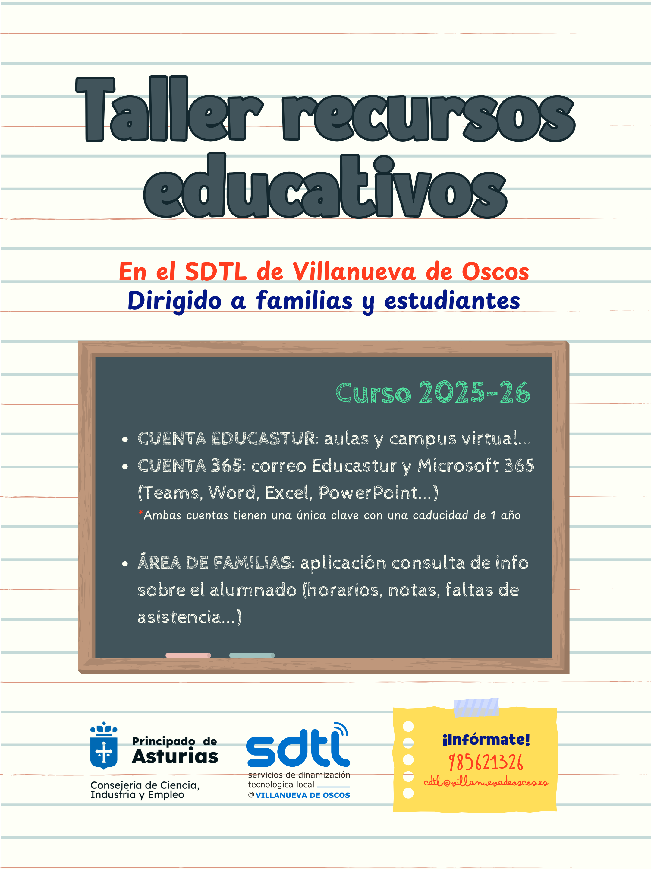 Información e inscripciones hasta el viernes 26 de septiembre en el CDTL (Telecentro) de Villanueva: 985 62 13 26 / cdtl@villanuevadeoscos.es