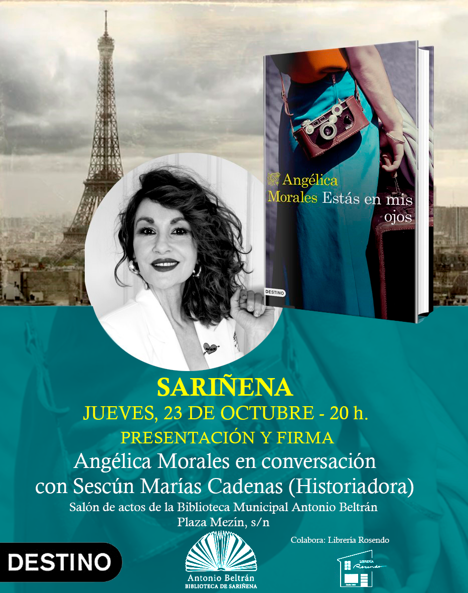 EL jueves 23 de octubre a las 20:00h en la biblioteca de Sariñena, la escritura Angélica Morales presentará su última novela:👉 "Estás en mis ojos".