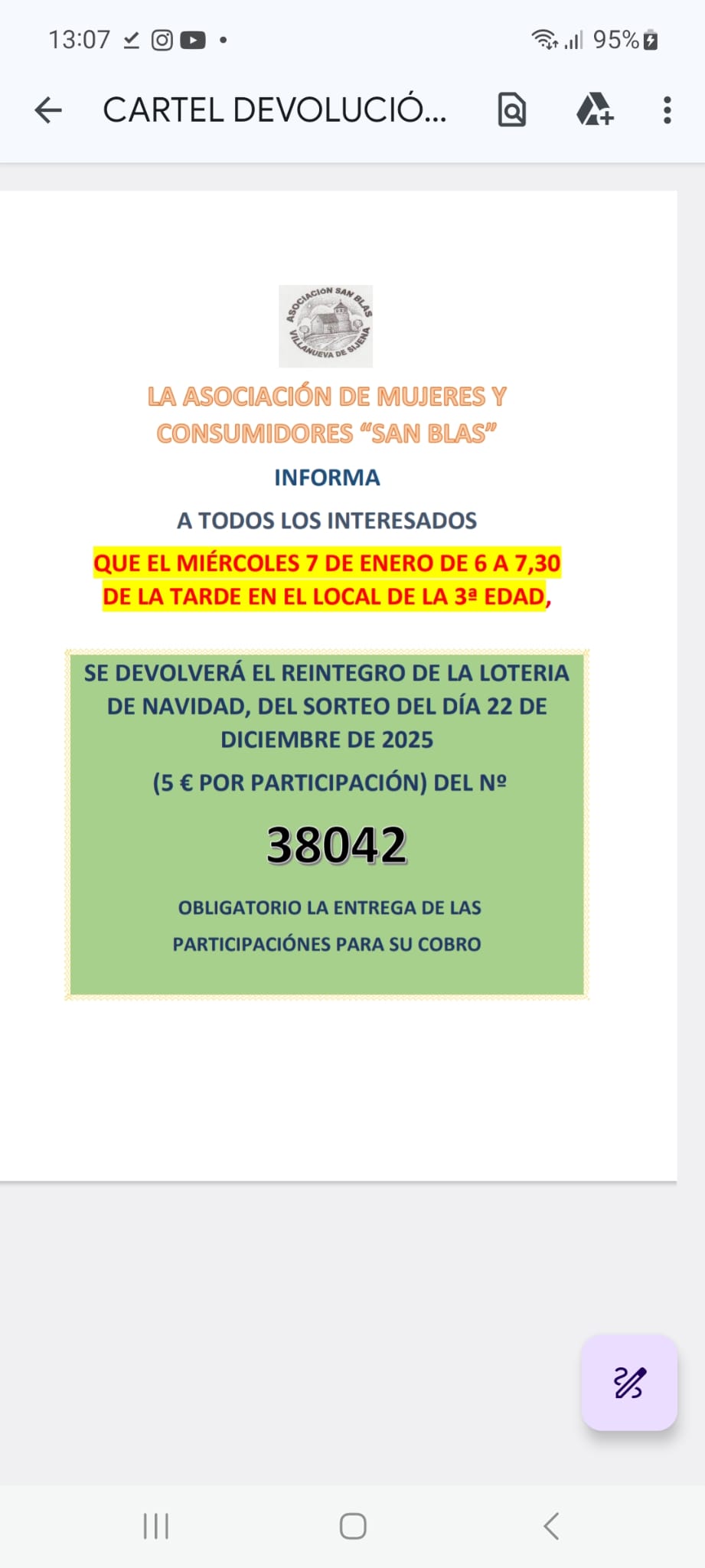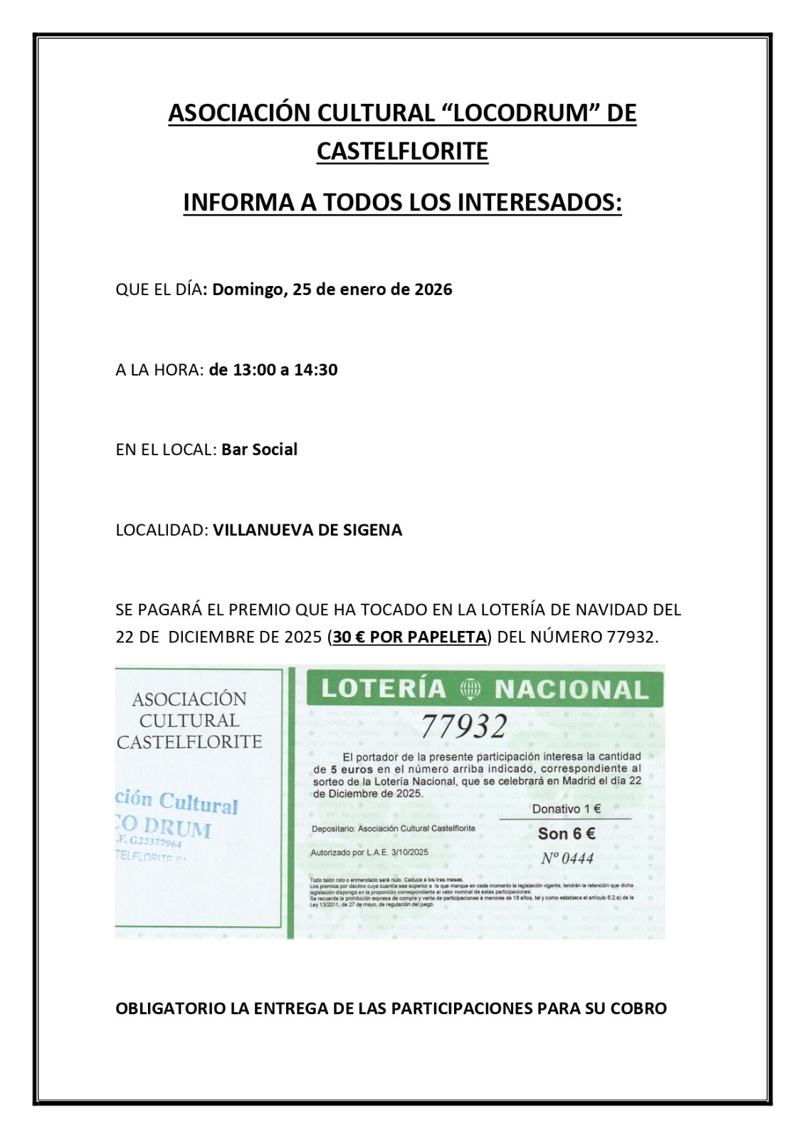 LA ASOCIACIÓN SAN BLAS INFORMA A TODO EL QUE QUIERA COBRAR LA LOTERÍA DE NAVIDAD QUE SE PONGA EN CONTACTO CON CUALQUIER MIEMBRO DE LA JUNTA.