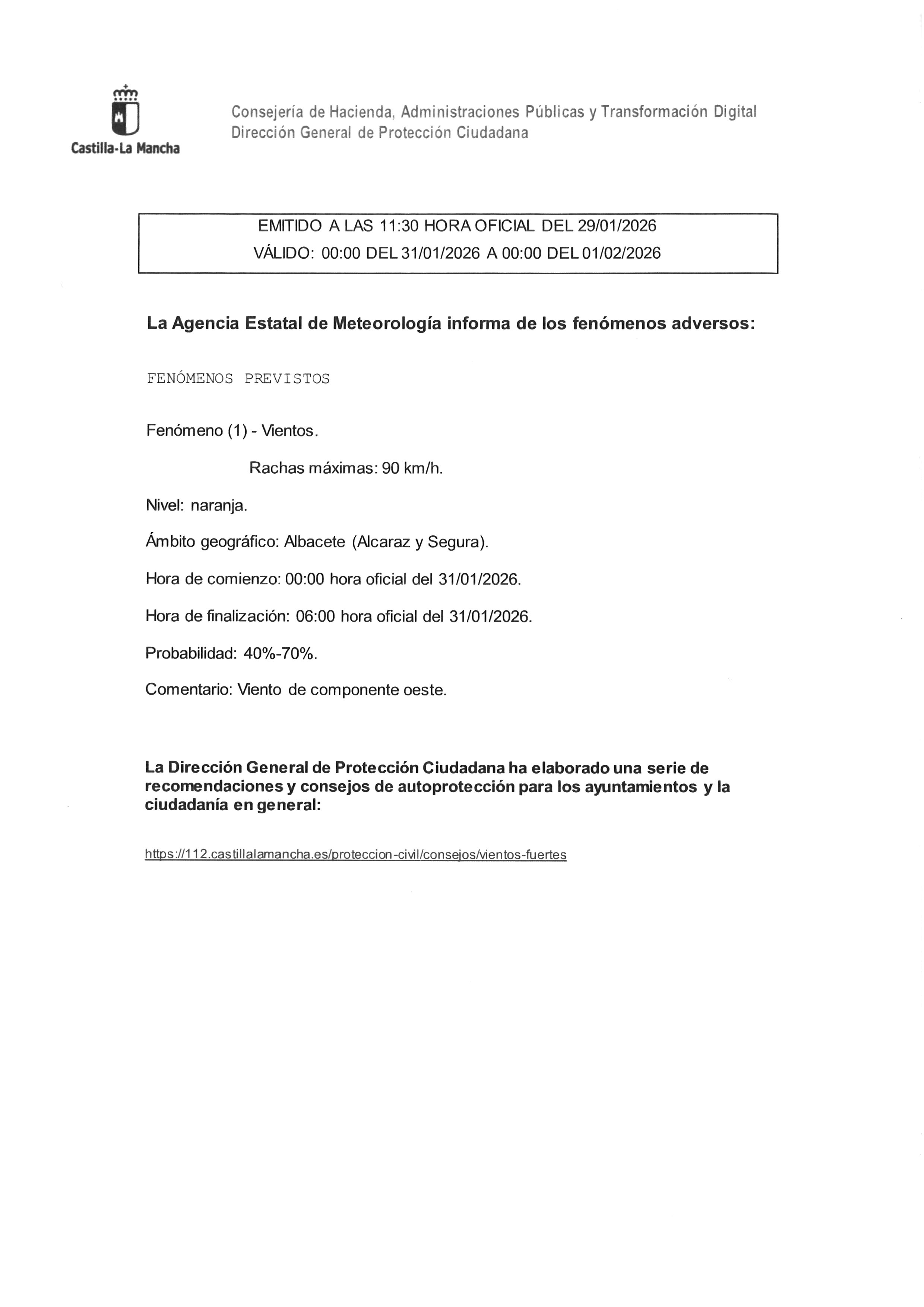 Las urgencias médicas serán atendidas en el centro de salud de Alcaraz.