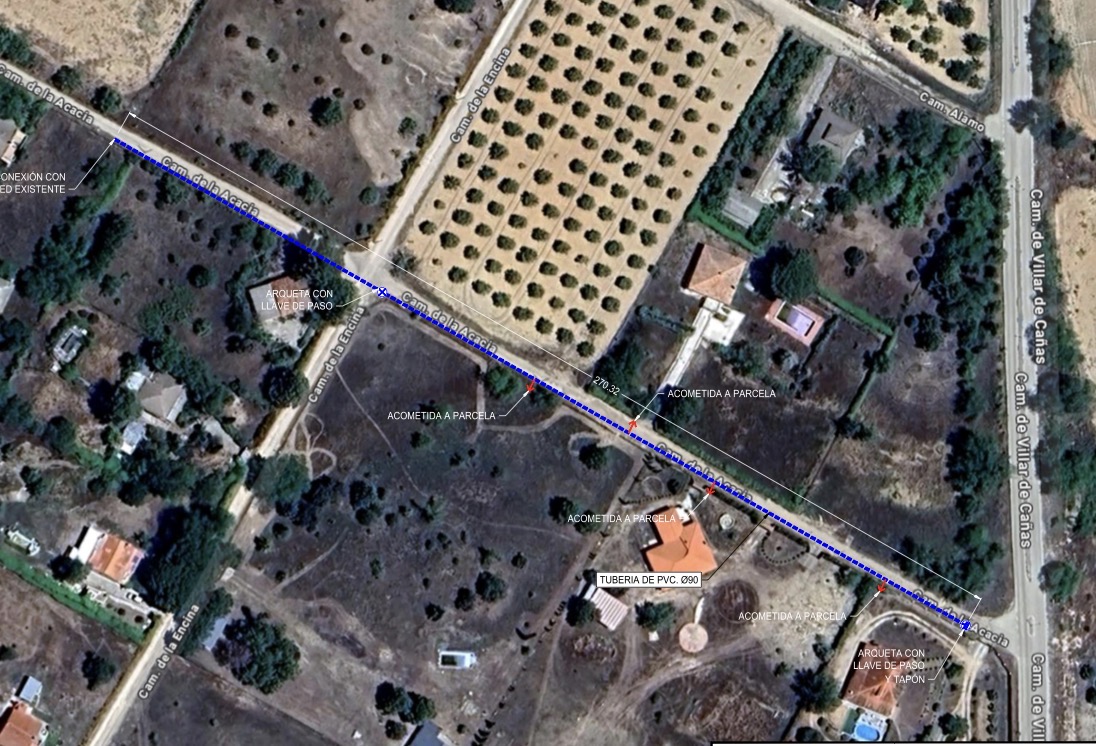 Estos días han empezado a ejecutarse por el Ayuntamiento las obras de sustitución de tuberías de la red de agua privativa de la Urbanización Privada Casalonga, en el camino de la Acacia, desde el camino de la Encina y hasta el camino de Villar de Cañas, gracias al POS 2025-2026.