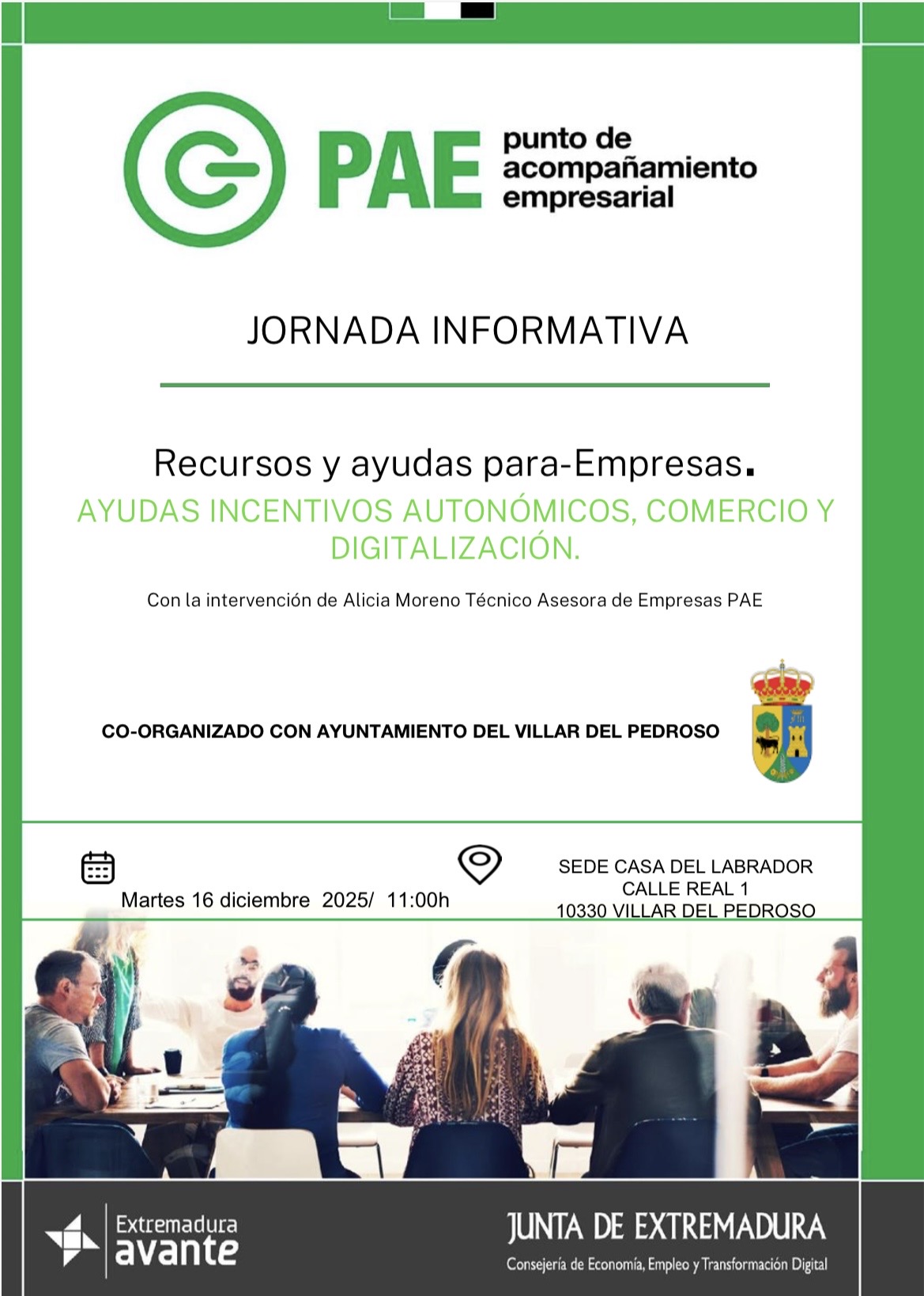 Desde el ayuntamiento de Villar del Pedroso junto con la CREEX (Confederación Regional Empresarial Extremeña - Organización sin ánimo de lucro), en colaboración con la Junta de Extremadura, estamos aplicando el PEAC (Procedimiento de Evaluación y Acreditación de Competencias Profesionales), con el objetivo de que las personas con experiencia laboral o formación no reglada, que no posean ti(...)