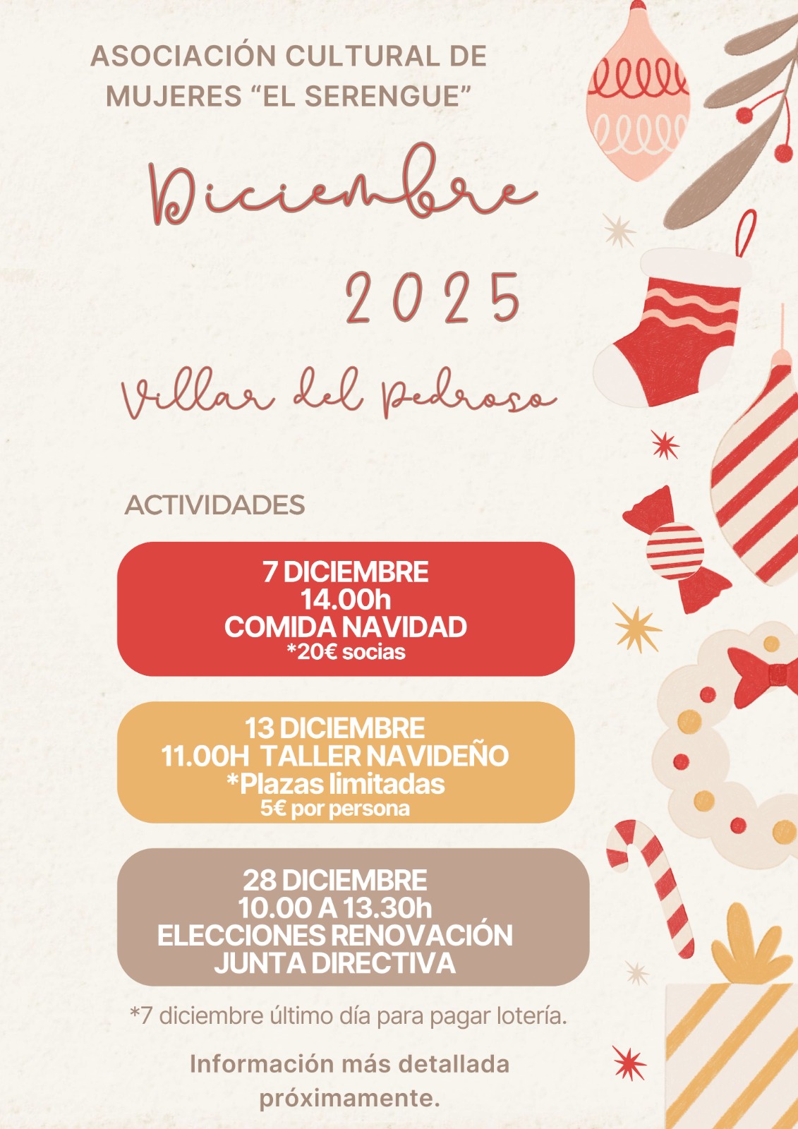 SE INFORMA QUE TODAS LAS PERSONAS QUE QUIERAN ASISTIR A LA COMIDA DE NAVIDAD DEL PRÓXIMO 26 DE DICIEMBRE, DEBERÁ APUNTARSE PREVIAMENTE EN EL AYUNTAMIENTO.