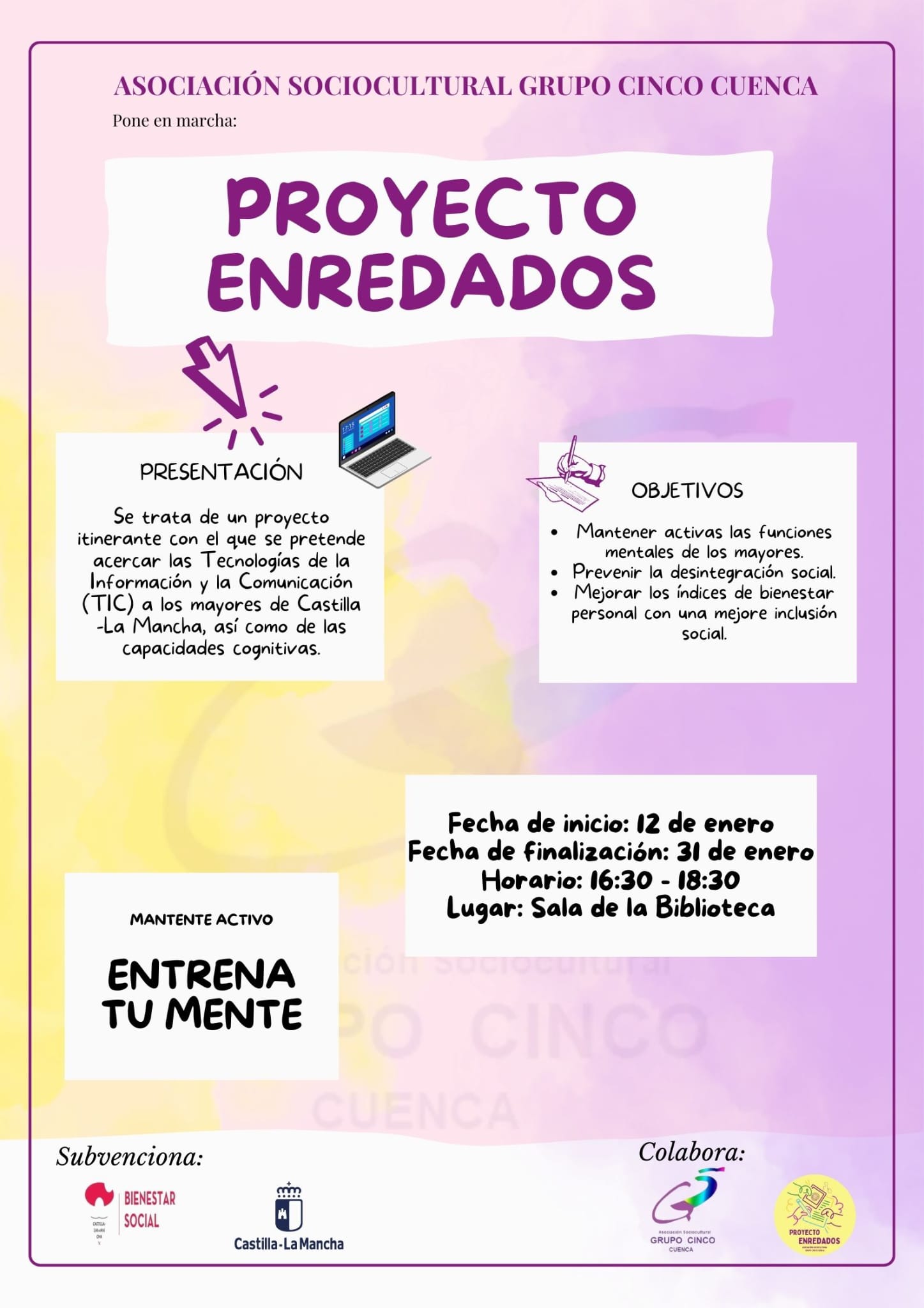 La Asociación Sociocultural Grupo Cinco Cuenca va a realizar en nuestro municipio el Proyecto “Enredados”, dirigido a personas mayores.