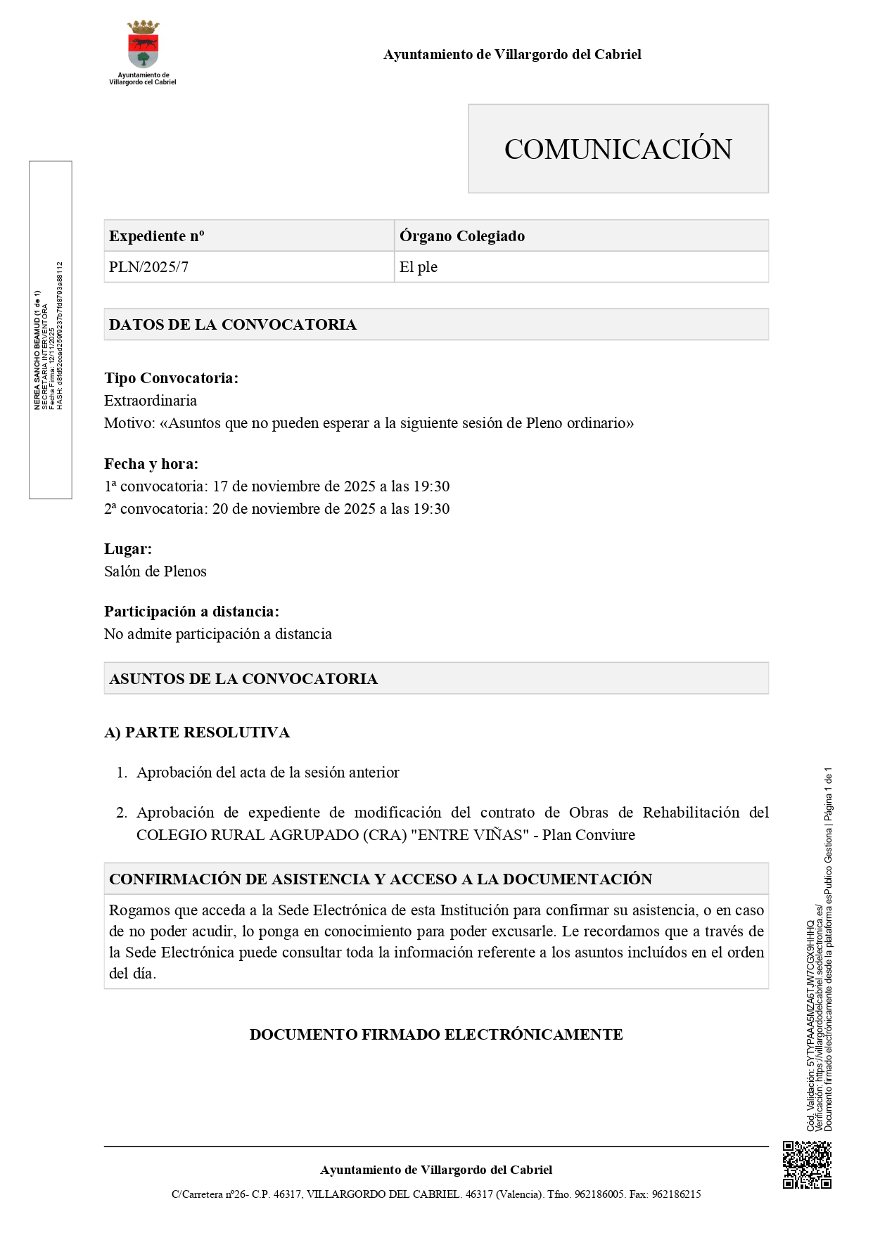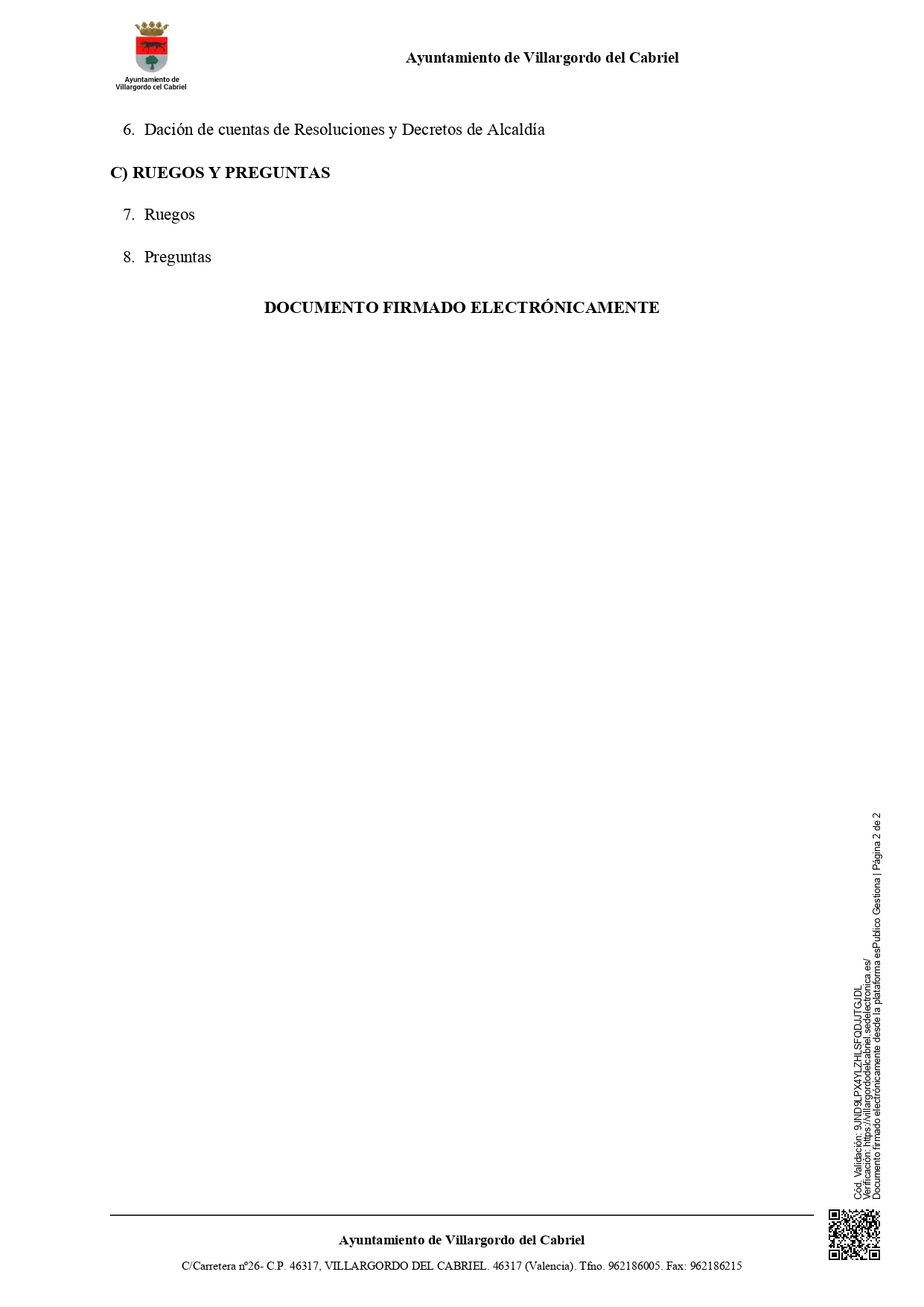 📍 Lugar: Salón de Plenos del Excmo. Ayuntamiento de Villargordo del Cabriel