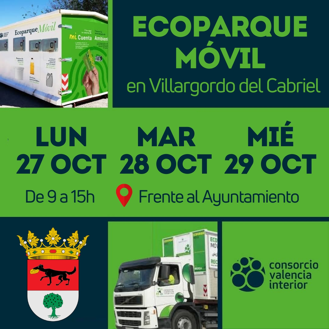 Hoy lunes 27, mañana martes 28 y este miércoles 29 de octubre de 2025, ECOPARQUE MÓVIL en Villargordo del Cabriel 🚚♻️