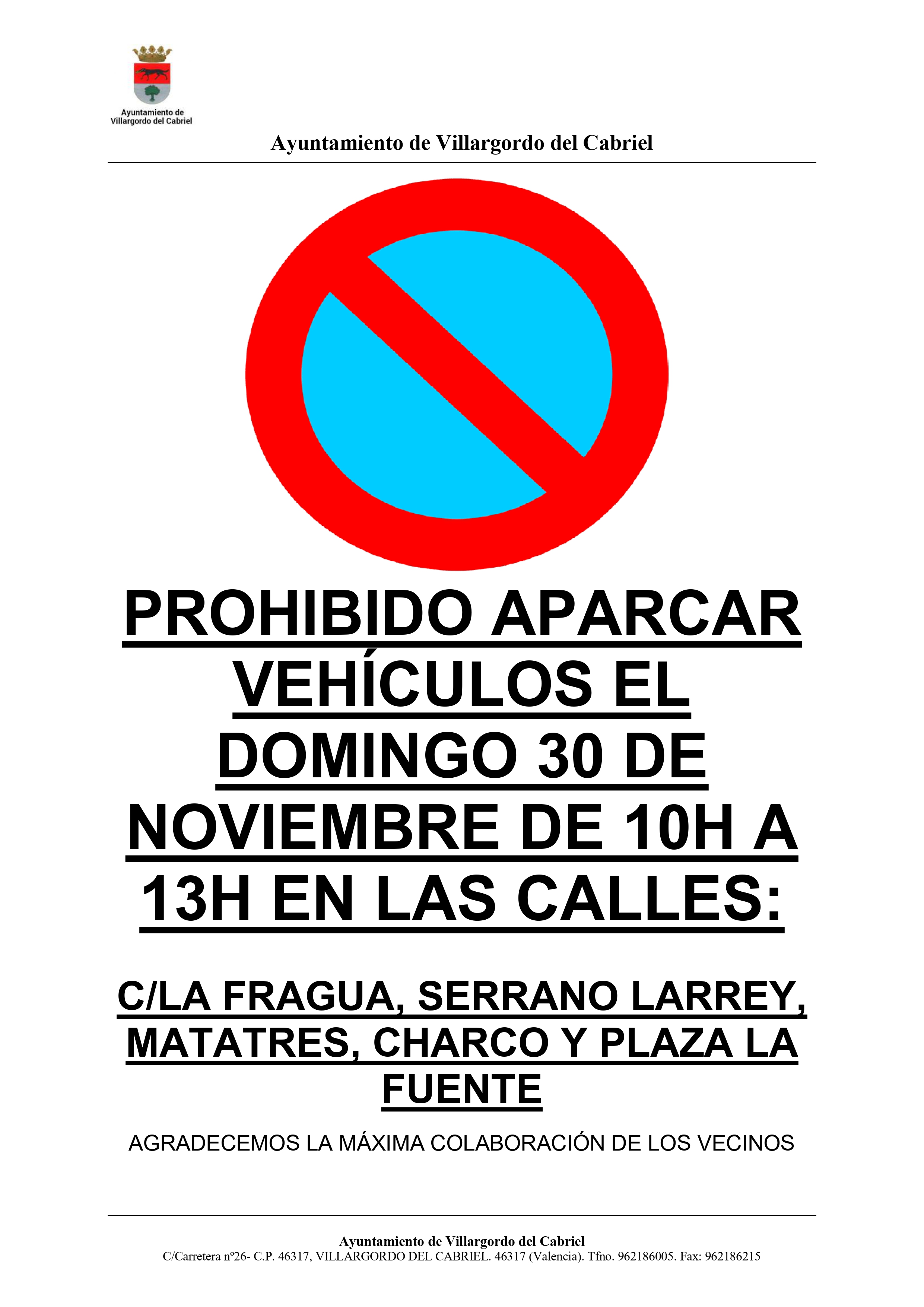 PROHIBIDO APARCAR EN EL RECORRIDO DE LA PROCESIÓN DE LA VIRGEN DE TEJEDA