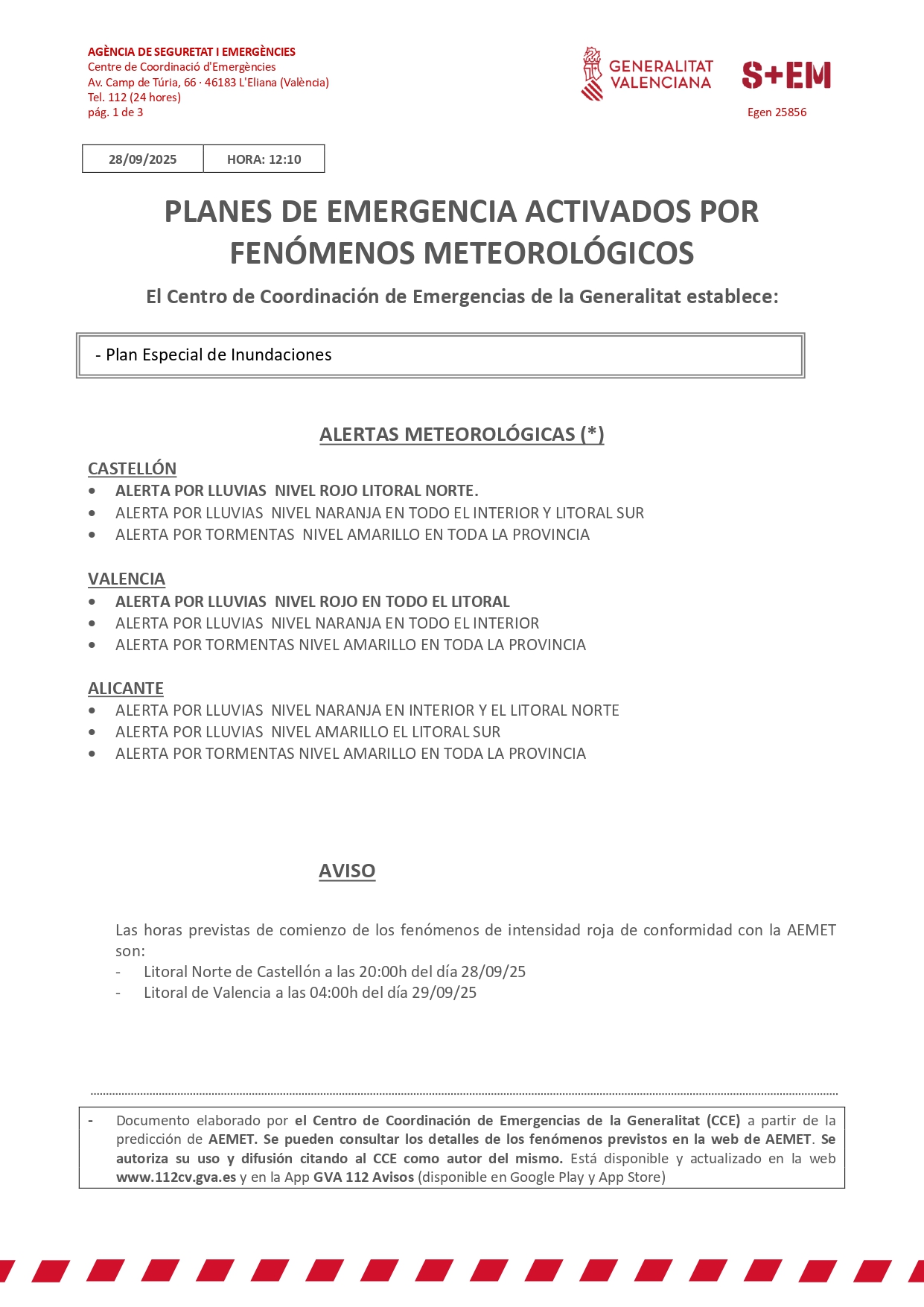 📣 El Centro de Coordinación de Emergencias de la Generalitat Valenciana ha establecido: