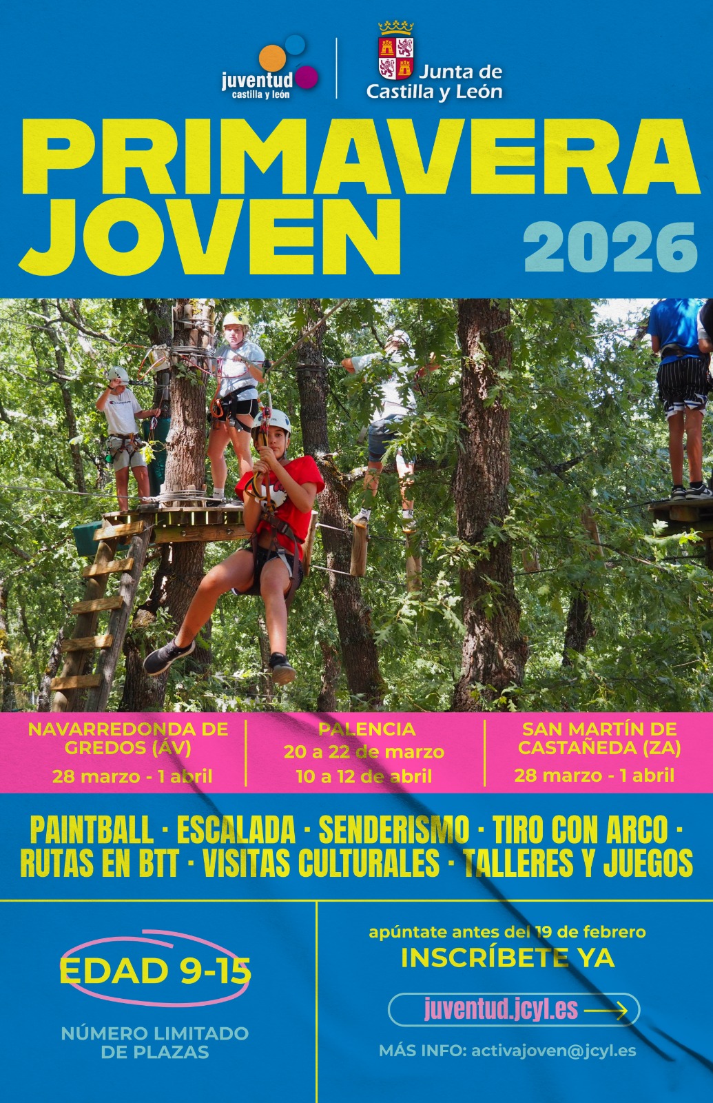 La Junta de Castilla y León convoca 130 plazas dentro del programa de actividades «Primavera Joven en Castilla y León 2026», para jóvenes nacidos entre los años 2011 y 2017.