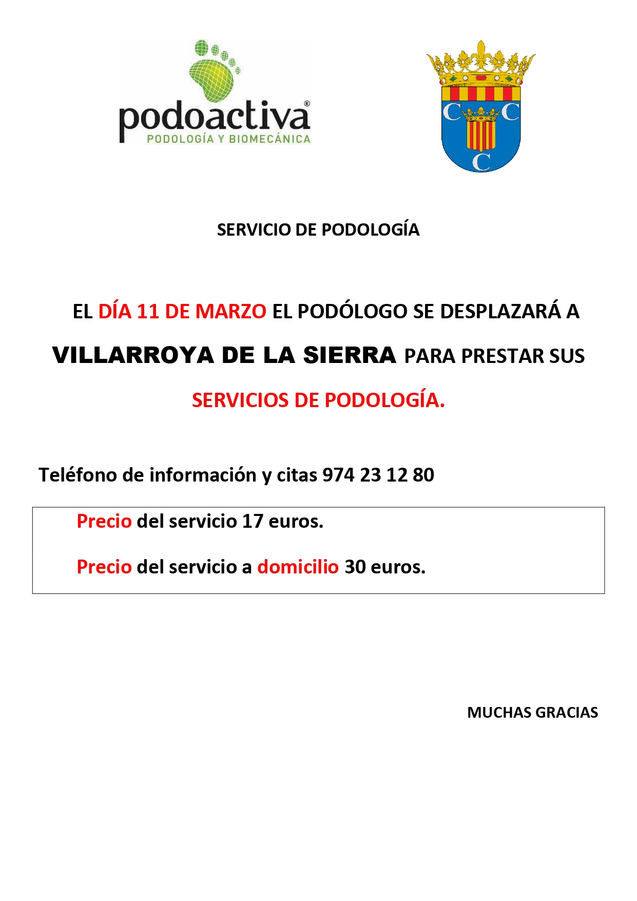 El podólogo prestará sus servicios el próximo día 4 de febrero.