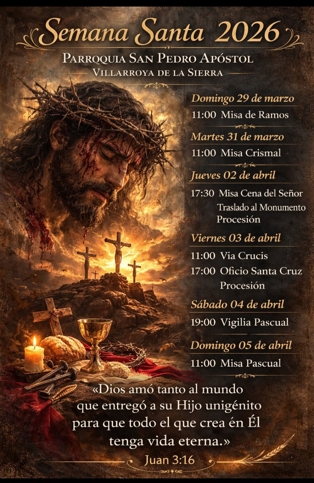 - Jueves 2 de abril a las 17:30 horas Misa Cena del Señor. Traslado al Monumento y Procesión