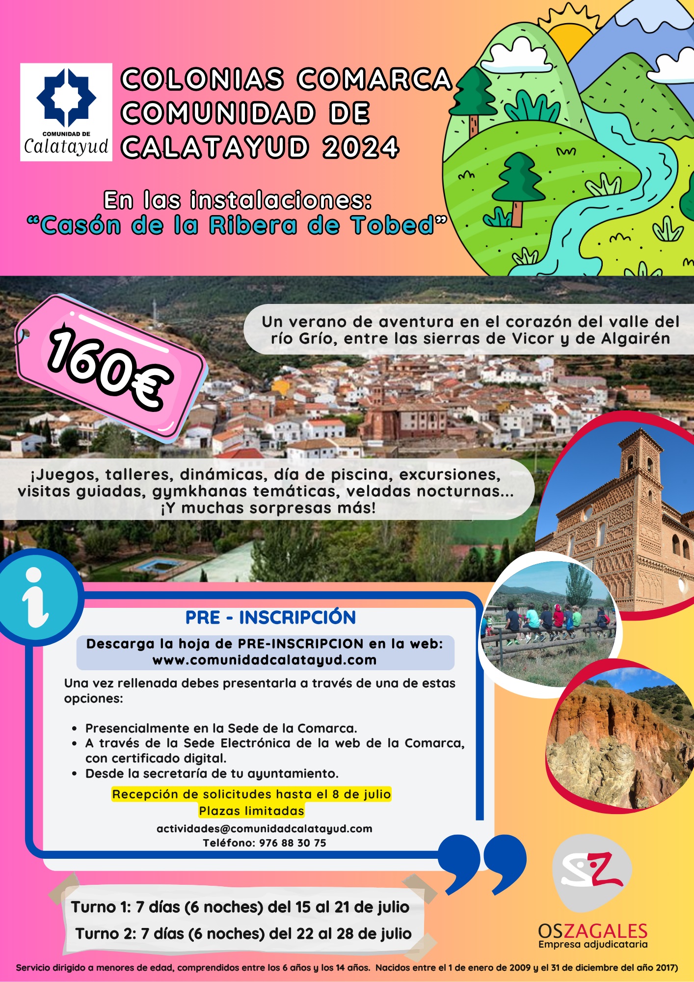 COLONIAS COMARCA COMUNIDAD DE CALATAYUD2024-06-21 09:58:21Info GeneralLa Comarca Comunidad de Calatayud organiza colonias de verano.
