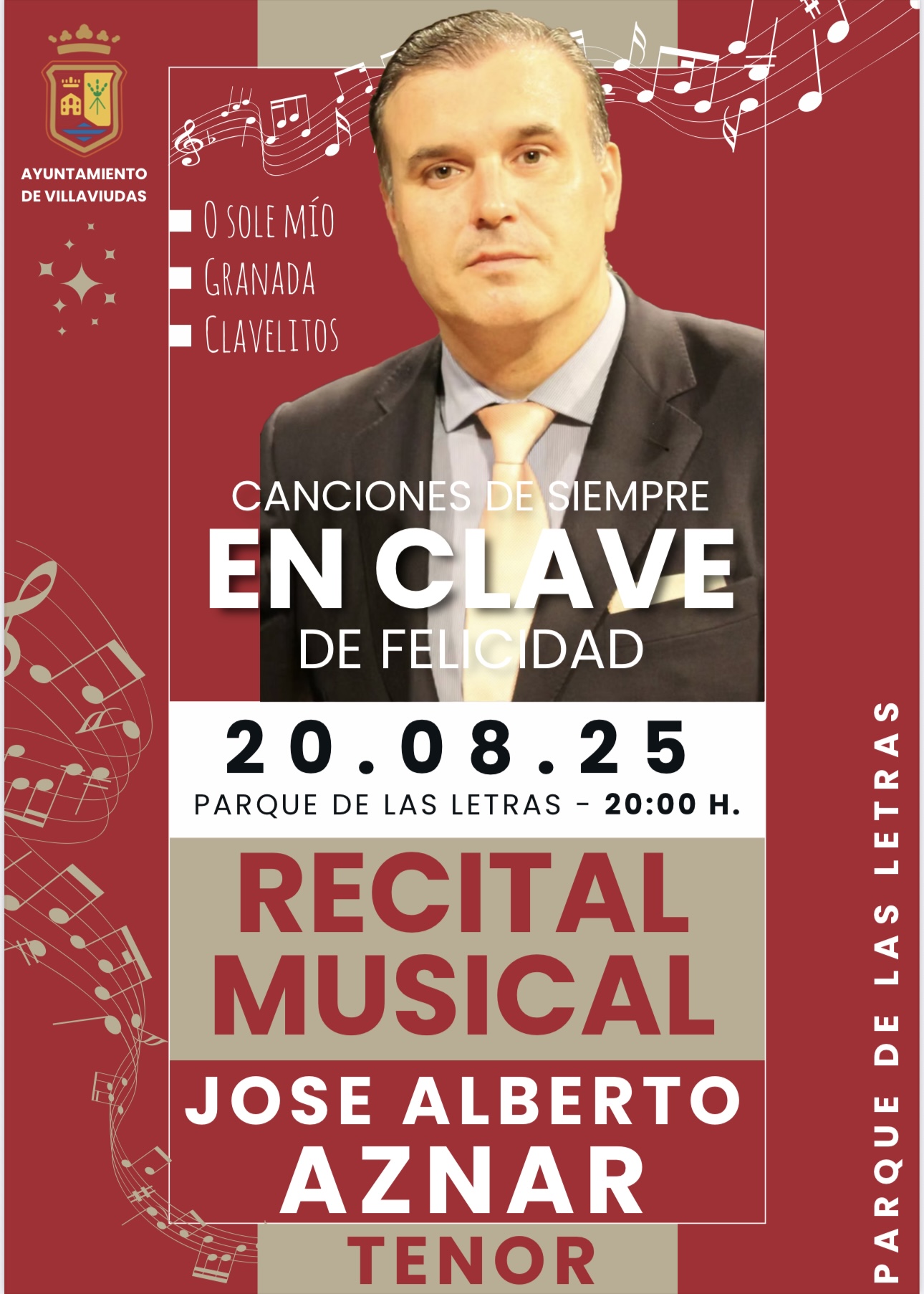 🎤 Tenor en directo, deleitándonos con una voz única y emocionante, 20:00h en El Parque de Las Letras