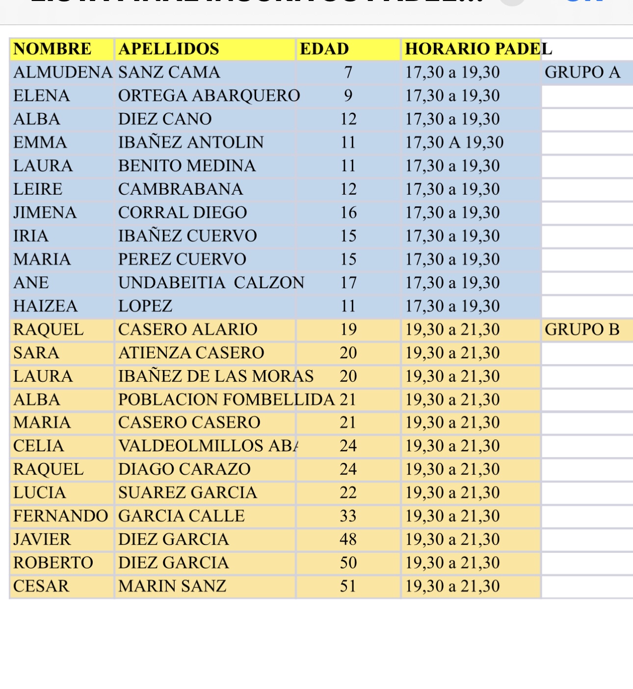 CURSO INICIACION PADEL , GRUPOS Y HORARIOS