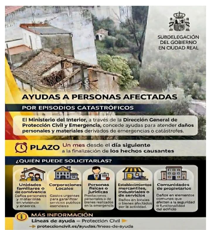 Os dejamos adjuntado el enlace de las Líneas de ayuda por los daños ocasionados por el temporal de lluvias asi como un cartel con toda la información:
