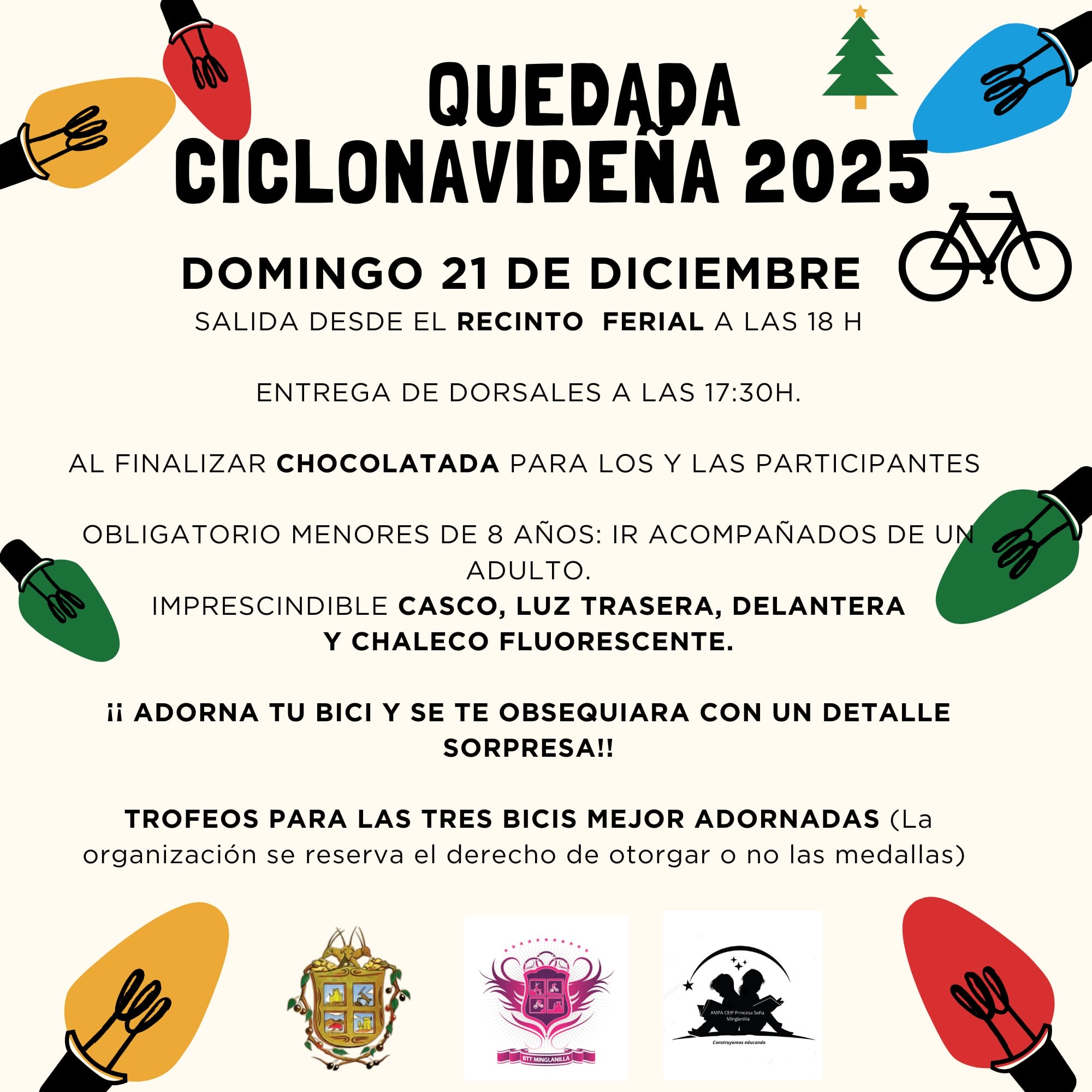 🎉Llega la Navidad y con ella una nueva edición de la Quedada Ciclonavideña organizada por la BTT de Minglanilla junto al AMPA El Salero este domingo 21 de diciembre.