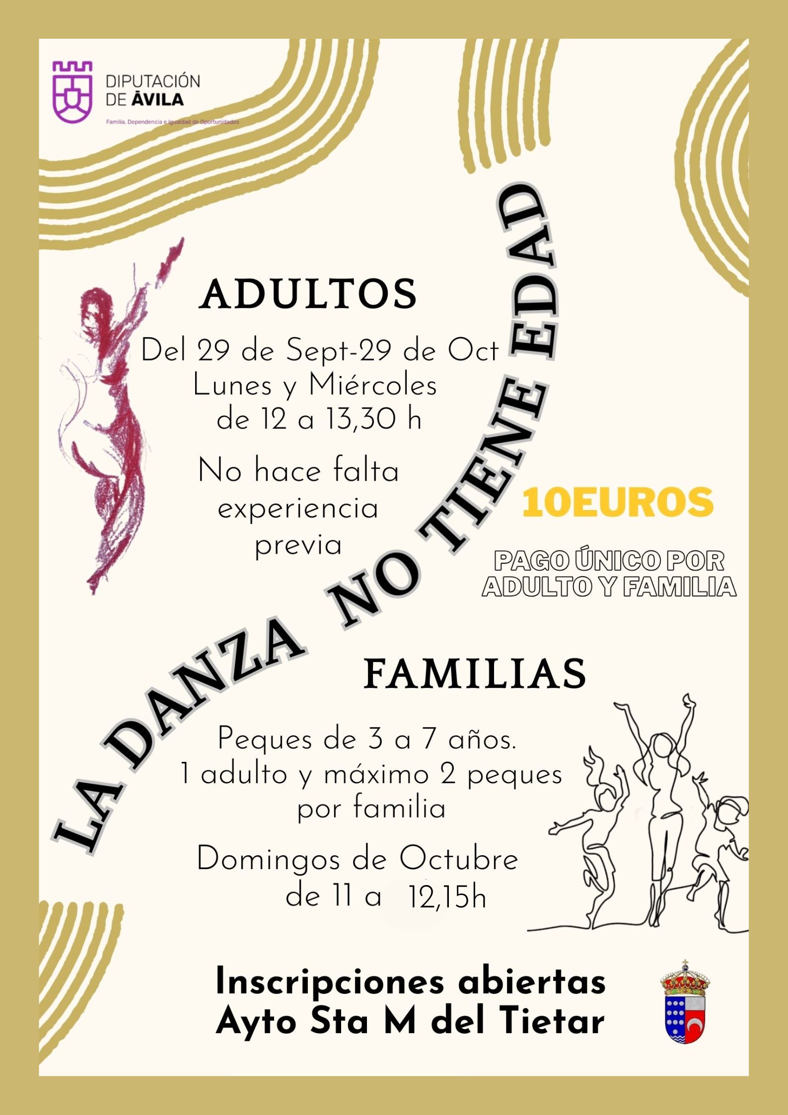 Durante los meses de septiembre y octubre se va a desarrollar en nuestra localidad un taller de Danza para adultos y niños, este taller forma parte del Programa de Animación Comunitaria para el año 2025 y cuenta con la participación del Área de Familia, Dependencia y Oportunidades de la Excma. Diputación Provincial de Ávila.