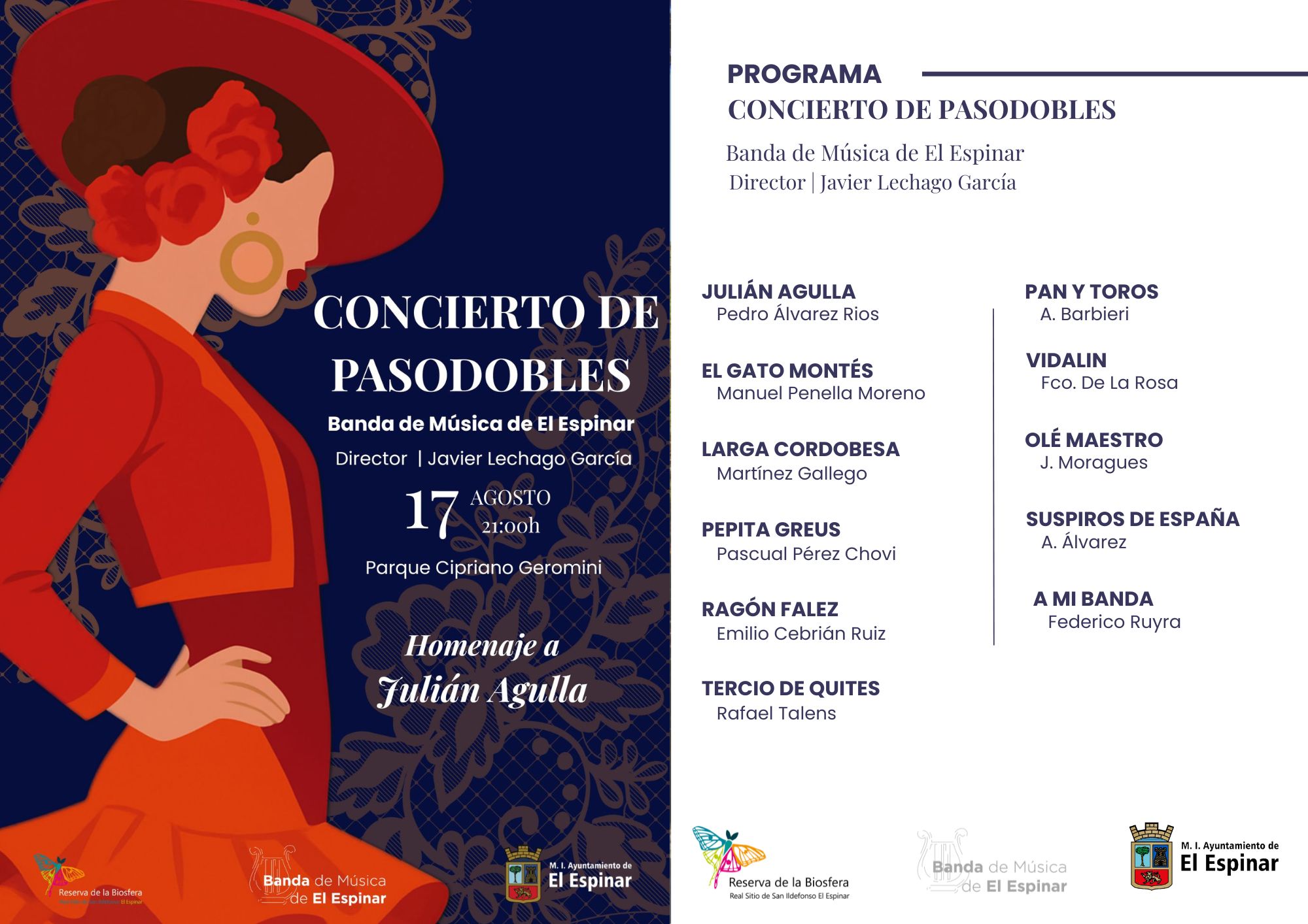 Disfruta de una velada musical única con la Banda de Música de El Espinar, dirigida por Javier Lechago García. Este concierto, que se celebrará el 17 de agosto a las 21:00h, en homenaje a Julián Agulla.