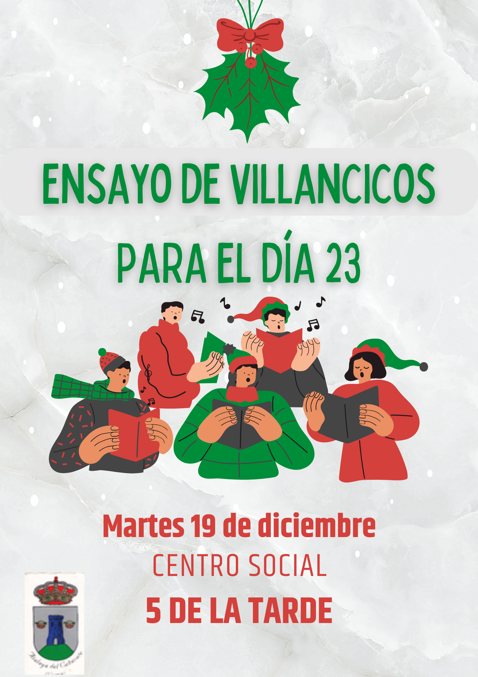 Mañana a las 5 de la tarde se van ensayar villancicos en el Centro Social para el día 23. Os esperamos.