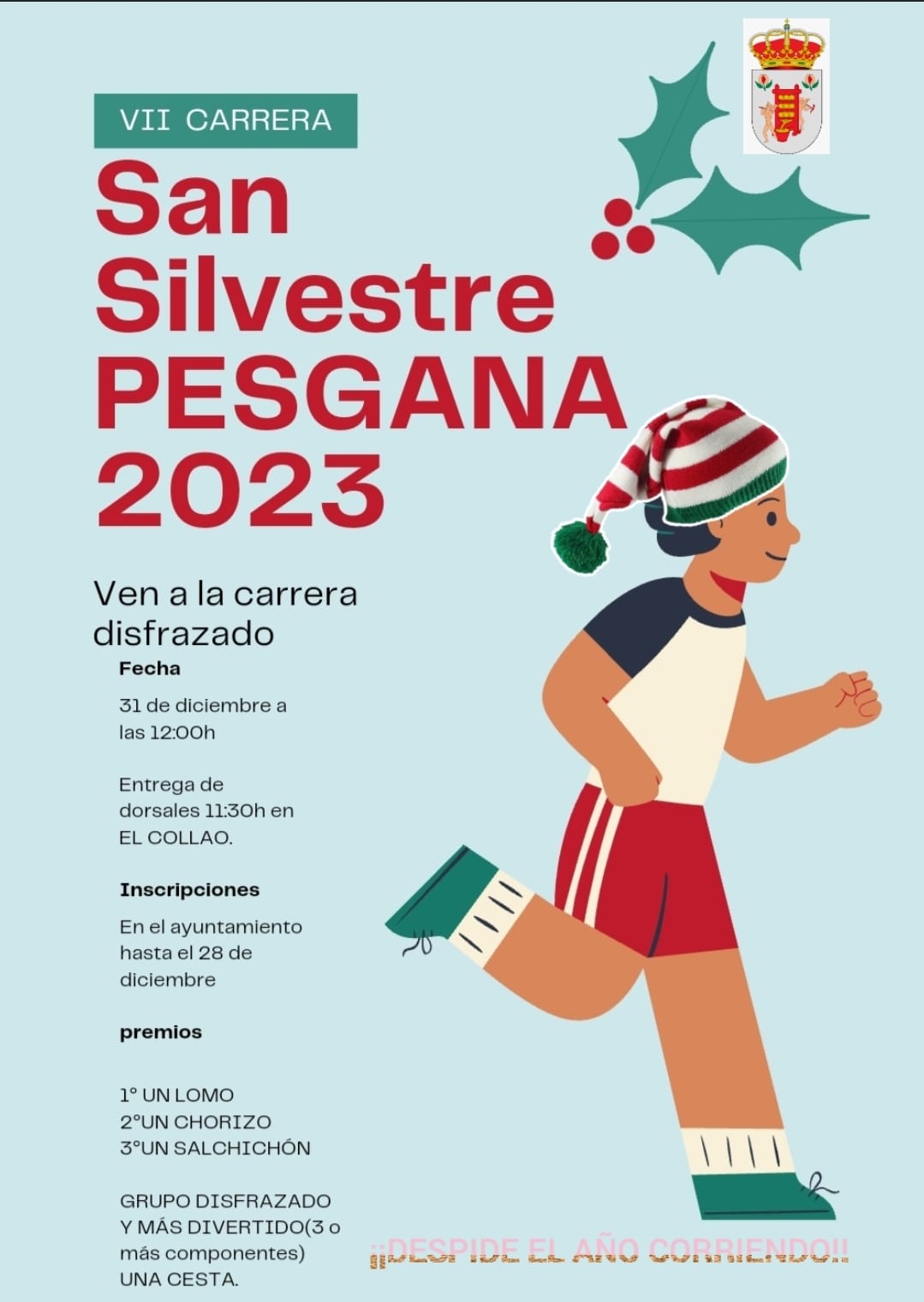 Se informa a tod@s l@s interesad@s que el próximo 31 de Diciembre, un año más se celebrará la Carrera San Silvestre Pesgana, se saldrá desde la Plaza del Collado, a partir de las 11:30h se entregarán los dorsales y a las 12:00 h dará comienzo la carrera.