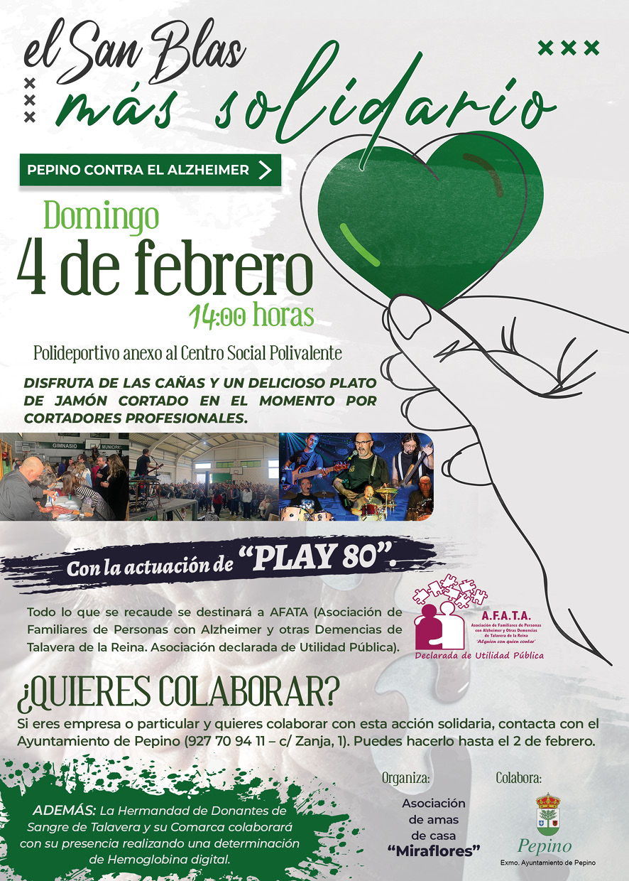 TODO LO RECAUDADO SE DESTINARÁ A “AFATA” ( ASOCIACIÓN DE FAMILIARES DE PERSONAS CON ALZEHIMER Y OTRAS DEMENCIAS DE TALAVERA DE LA REINA. ASOCIACIÓN DECLARADA DE UTILIDAD PÚBLICA)