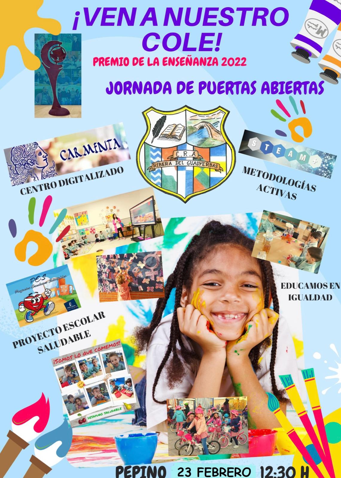 El próximo viernes, 23 de febrero, a las 12:30 horas, tendrá lugar la JORNADA DE PUERTAS ABIERTAS DEL C.R.A. RIBERA DEL GUADYERBAS en Pepino.