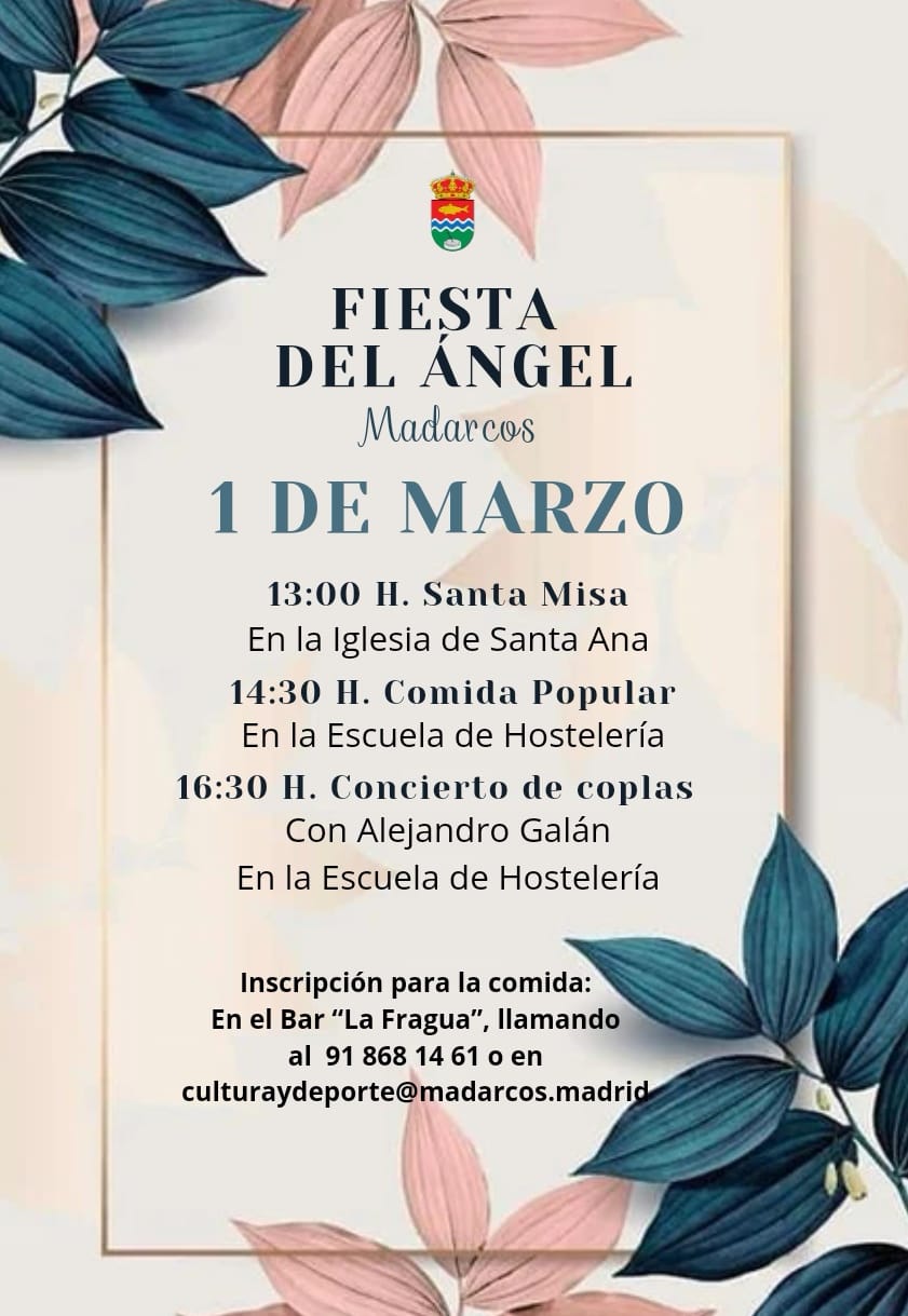 CADA 1 DE MARZO SE CELEBRA EL DÍA DEL ANGEL EN MADARCOS. ESE DÍA ES UN DIA PERFECTO PARA CELEBRAR LA VIDA. SI ESTAS POR MADARCOS ESE 1 DE MARZO NO DUDES EN PARTICIPAR EN LO QUE HEMOS ORGANIZADO DESDE EL AYUNTAMIENTO.