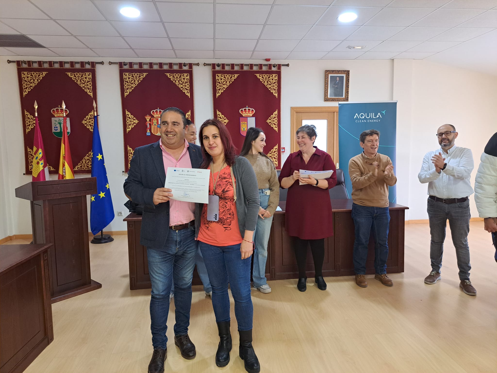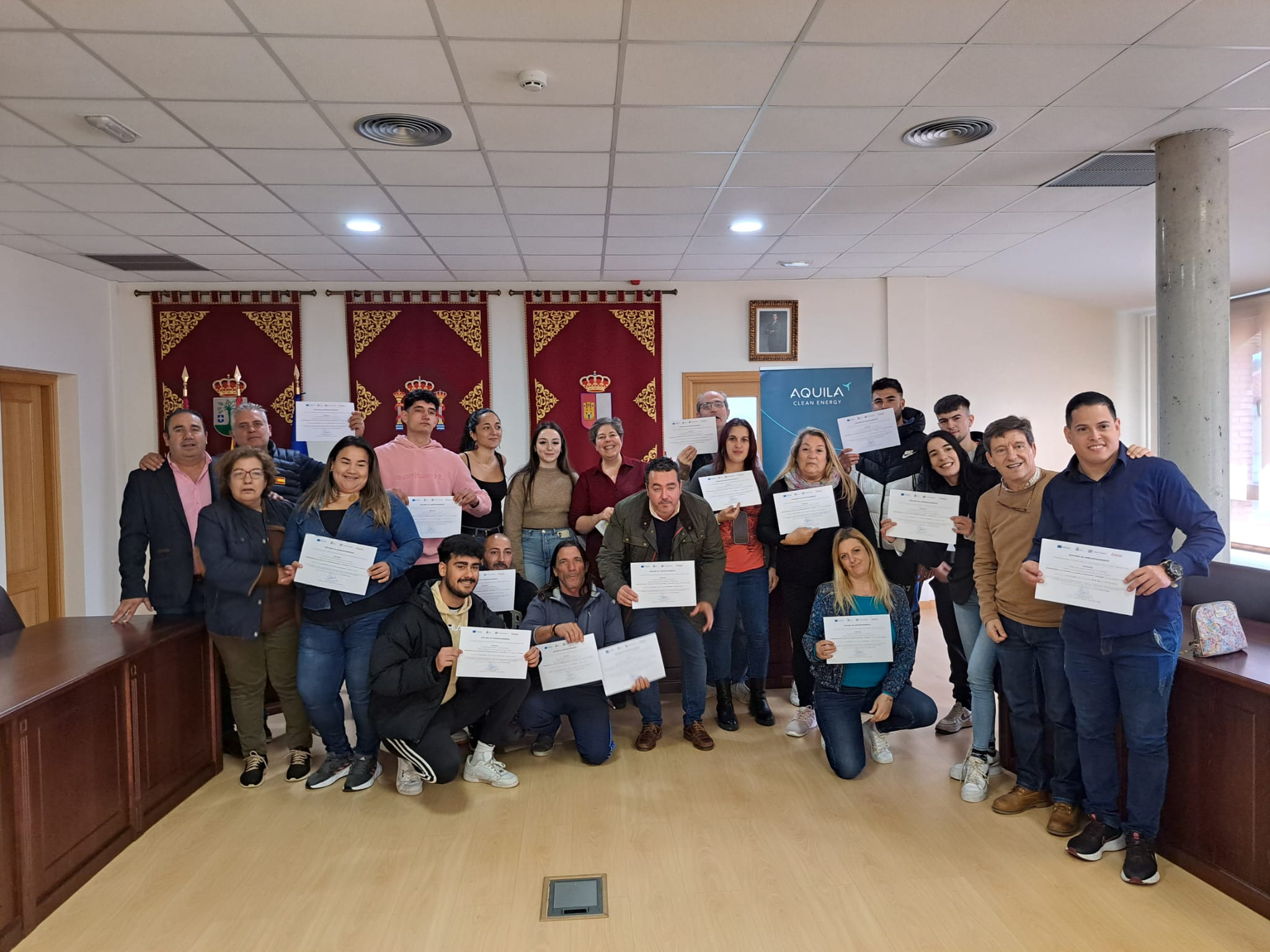El pasado viernes se clausuró el CURSO DE EMPRENDIMIENTO DE ENERGÍAS RENOVABLES, en cumplimiento con el acuerdo de colaboración firmado entre AQUILA CLEAN ENERGY y el EXCMO. AYUNTAMIENTO DE PEPINO, para fomentar el empleo en plantas fotovoltaicas.