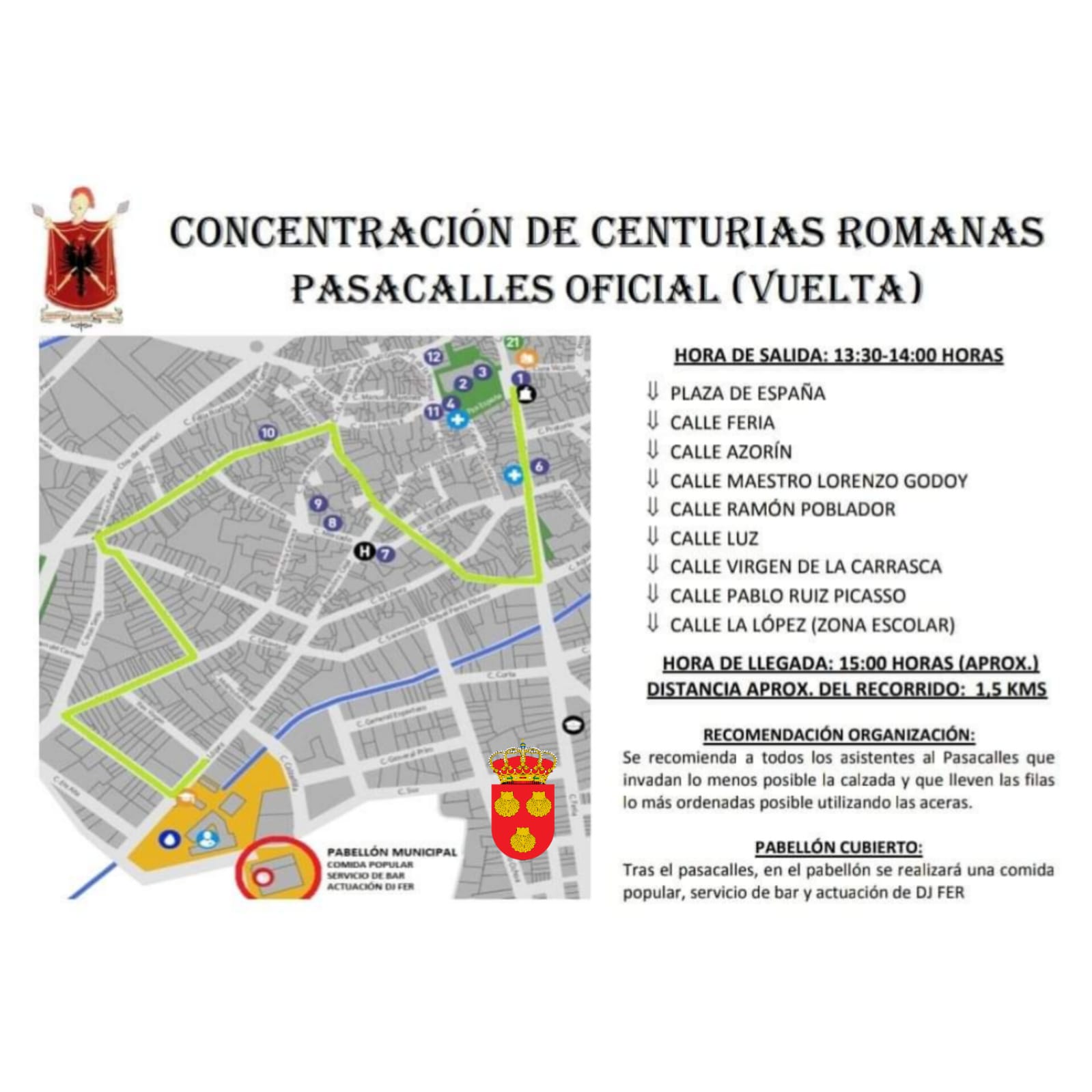 Con motivo del pasacalles de la I Concentración de Centurias Romanas, queda prohibido el aparcamiento en las calles que conforman el itinerario de las fotografías adjuntas.