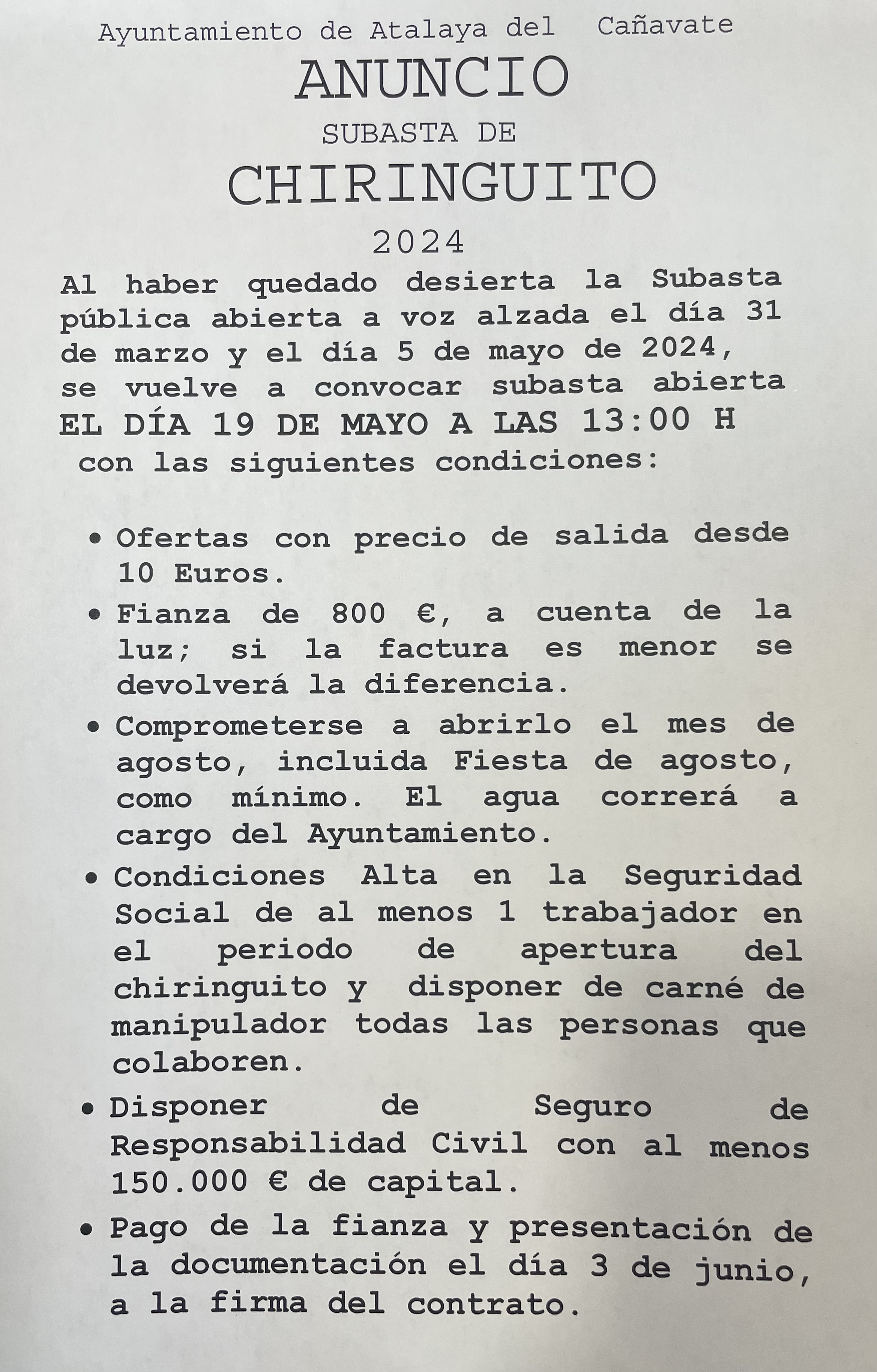 ‼️ REPETICIÓN SUBASTA CHIRINGUITO DE VERANO