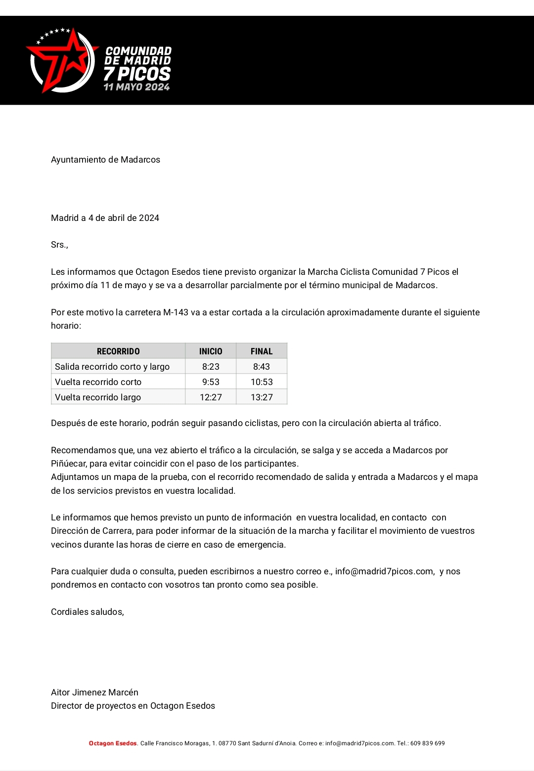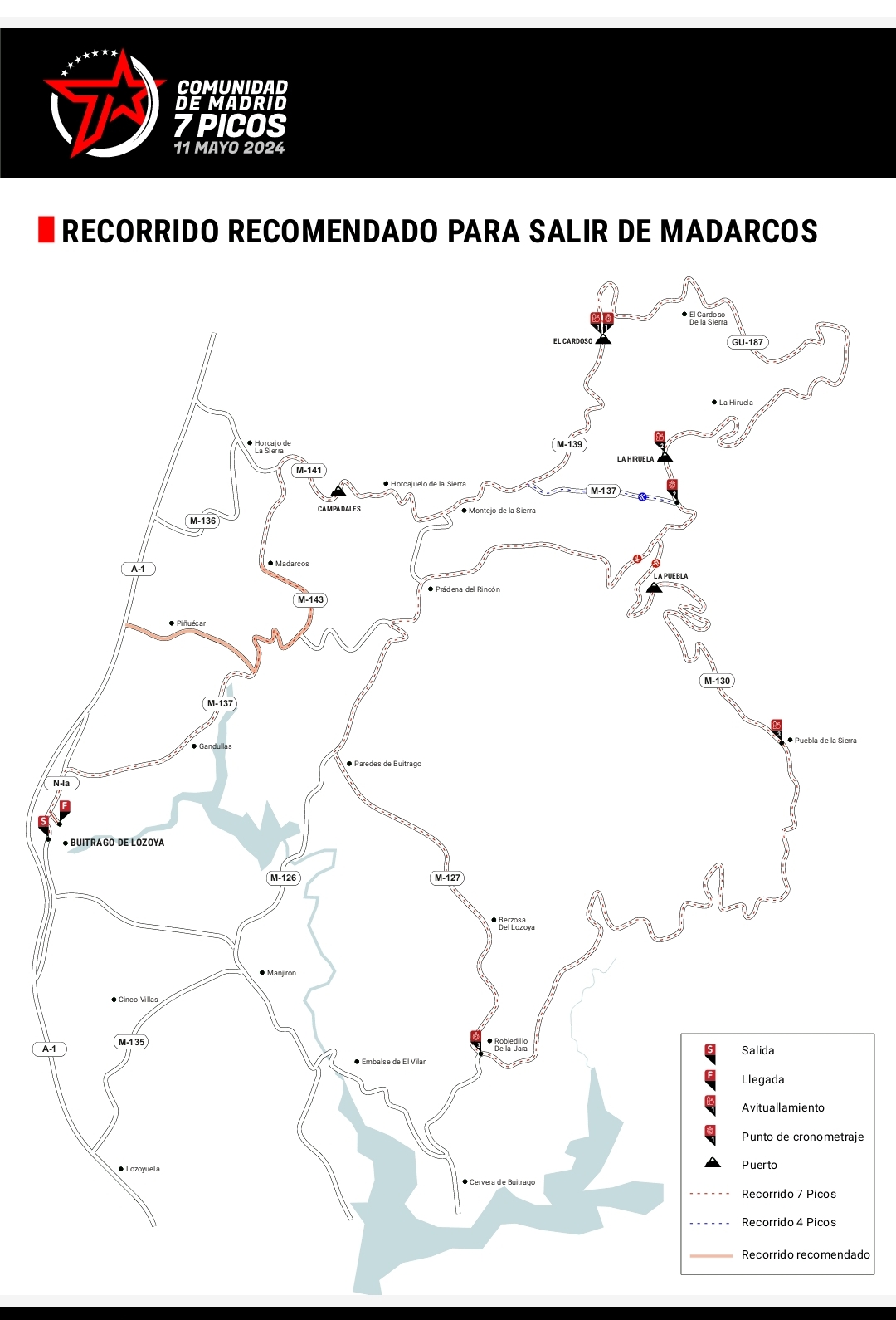 ADJUNTAMOS DESDE EL AYUNTAMIENTO DE MADARCOS EL RECORRIDO RECORRIDO RECOMENDADO PARA SALIR DE MADARCOS DURANTE EL EVENTO MADRID 7 PICOS