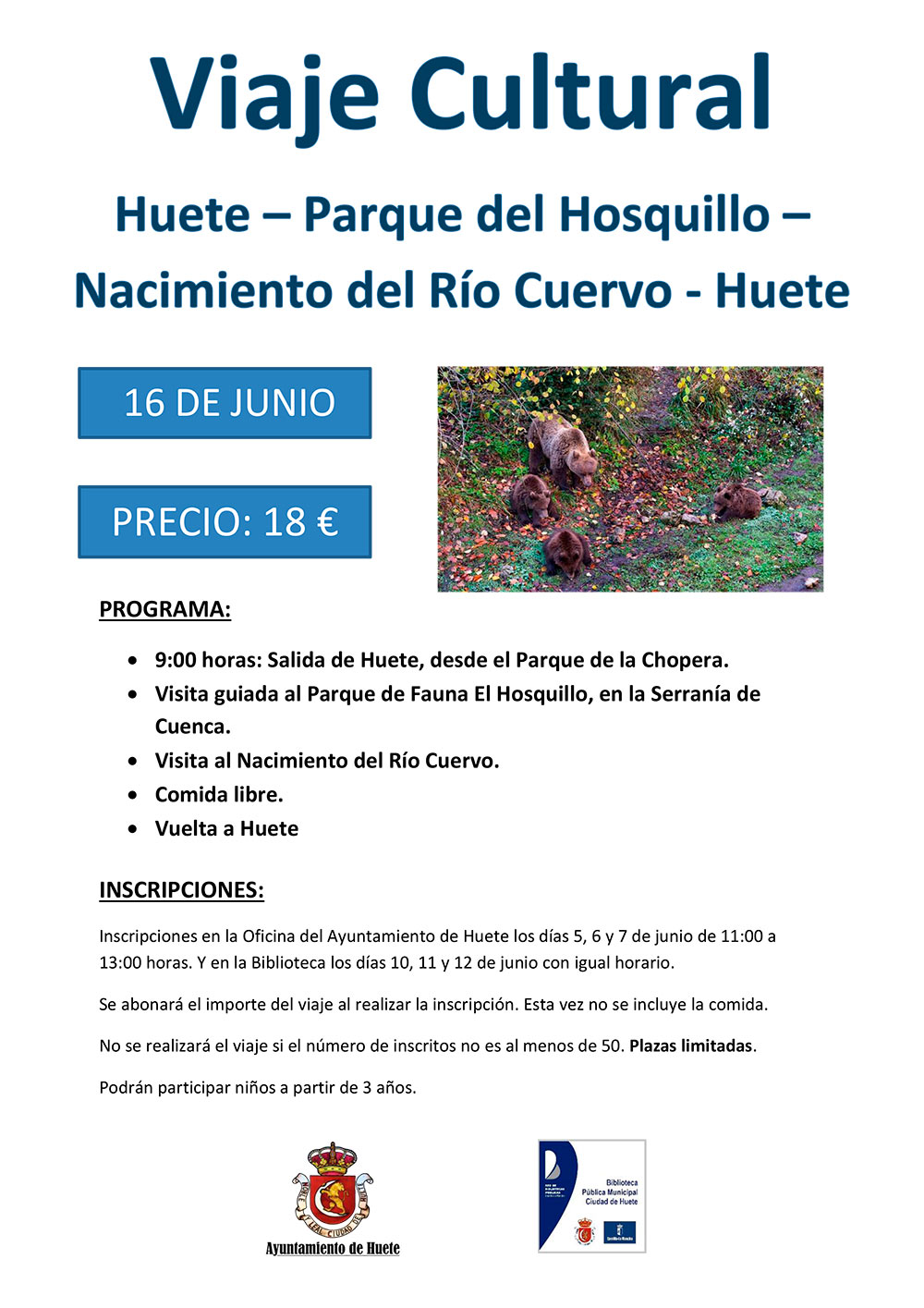 El Ayuntamiento de Huete organiza un nuevo viaje cultural, esta vez a la naturaleza de la Serranía de Cuenca, para visitar el Parque de Fauna El Hosquillo, y el Nacimiento del Río Cuervo.