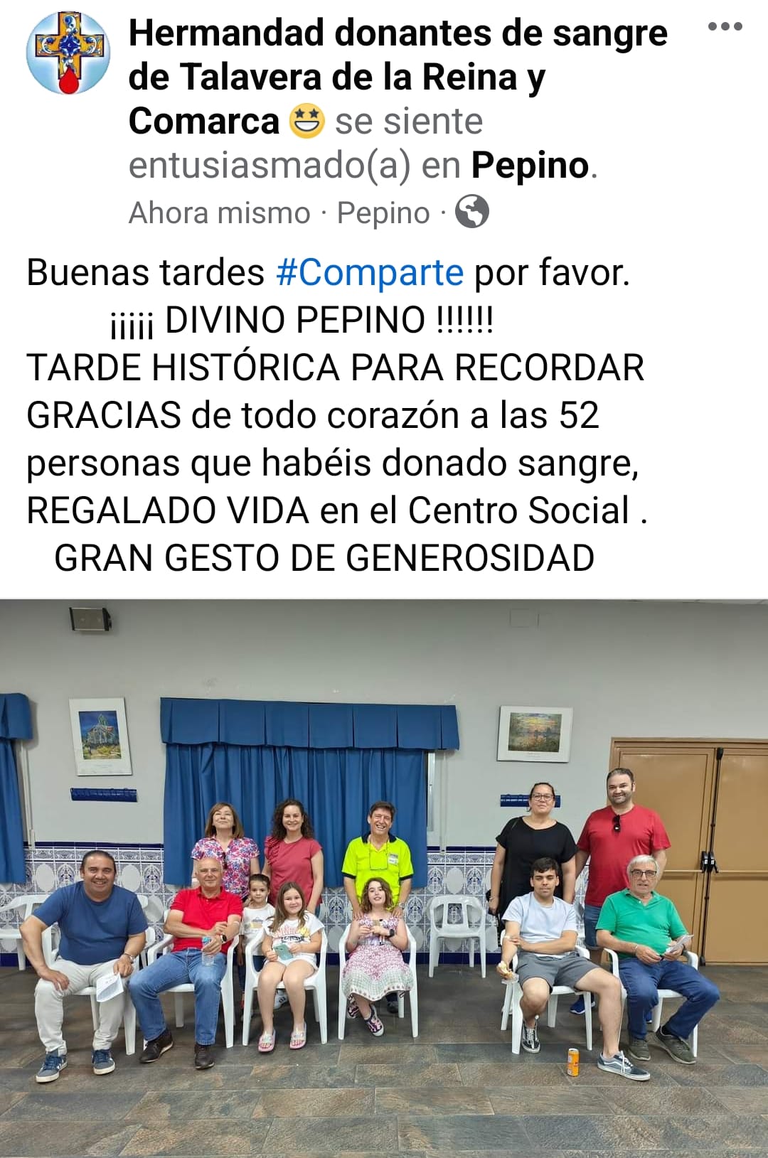 Desde la Hermandad de Donantes de Sangre de Talavera y Comarca queremos agradecer a las/os 52 vecinos de nuestro término municipal su donación de sangre de ayer 11/06/2024.