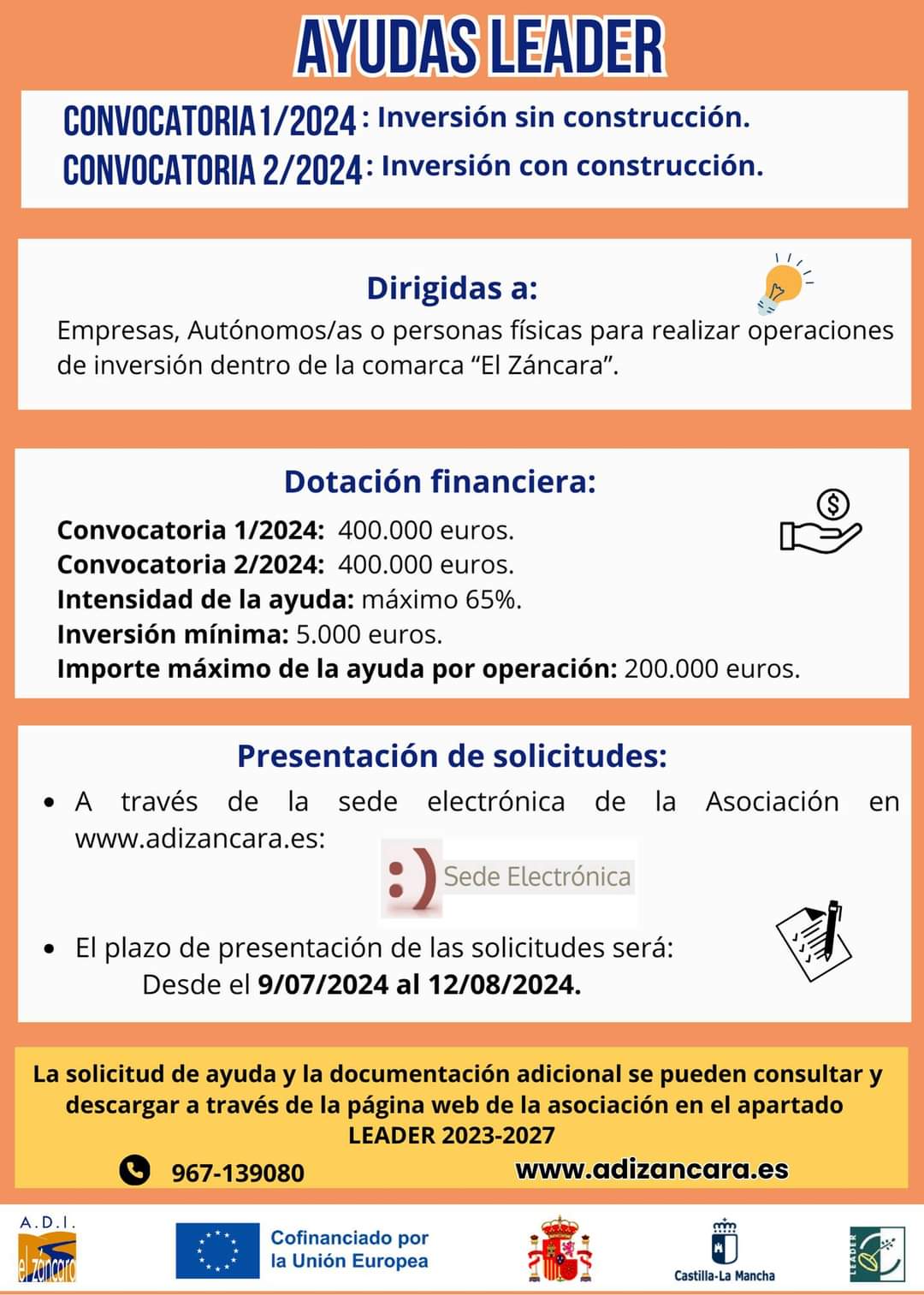 Dirigida a empresas, autónomos/as o personas físicas que vayan a realizar operaciones de inversión dentro de la comarca "El Záncara" .