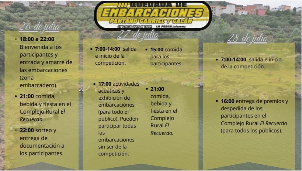 Se informa a todos los vecinos que con motivo de la III Quedada de Embarcaciones, el sábado por la tarde habrá actividades acuáticas, los propietarios de embarcaciones que no concursan también pueden participar