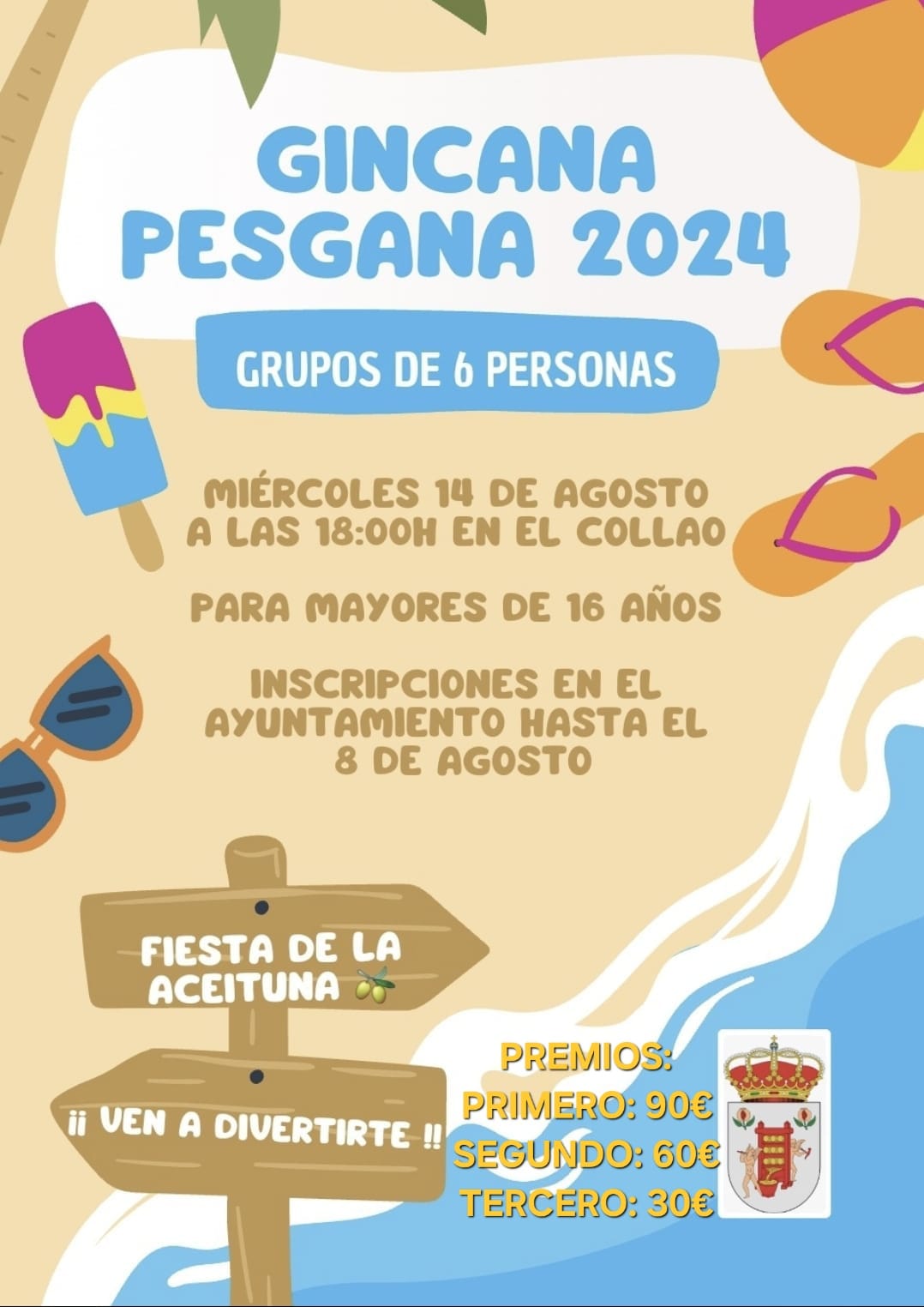 Se informa a tod@s l@s interesad@s en participar en la Gincana que se celebrará el día 14 de Agosto a las 18:00 h en la Plaza del Collado, con motivo de las Fiestas de la Aceituna, pueden pasar a inscribirse por el Ayuntamiento.