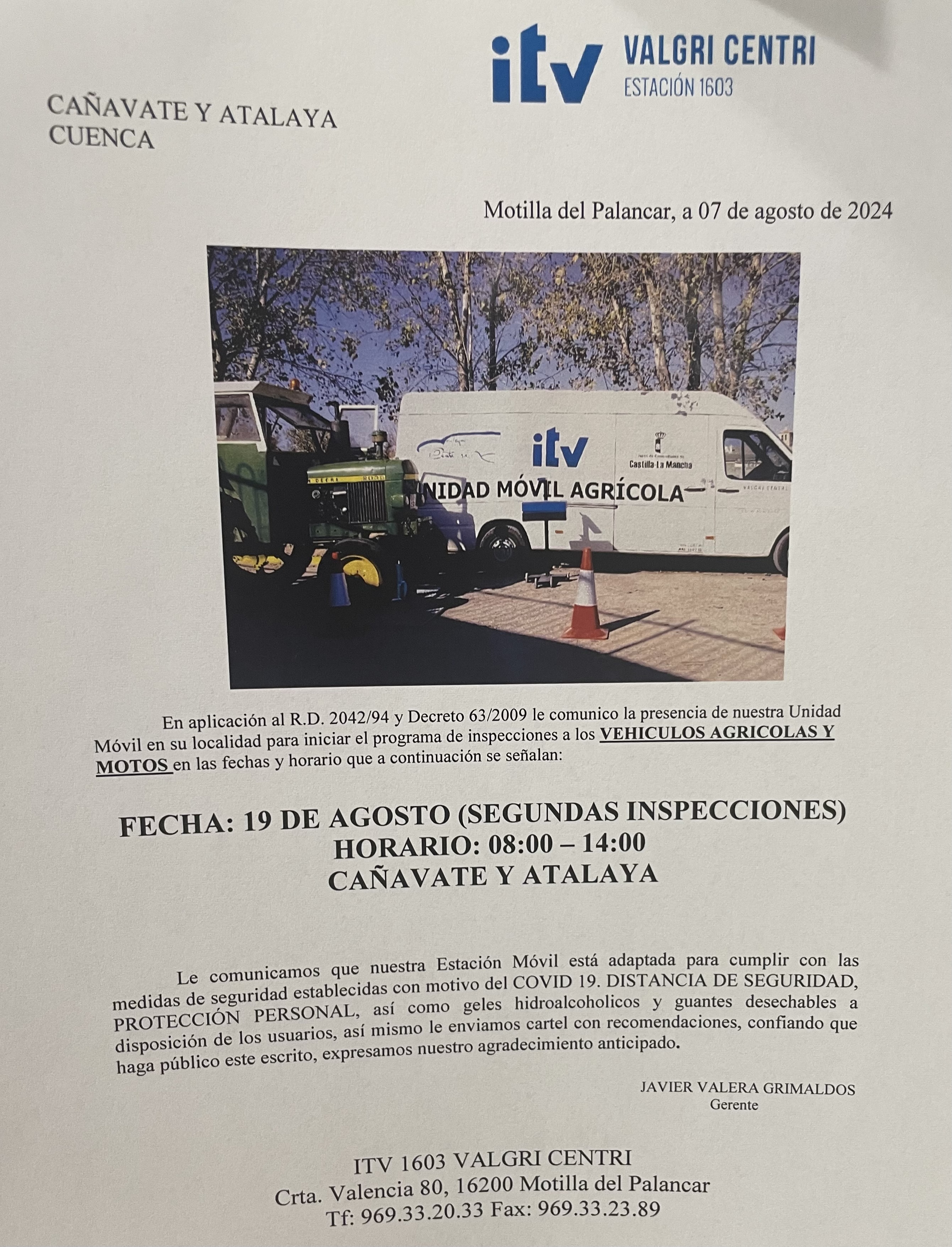 El 19 y el 22 de agosto se pasarán las inspecciones.Consultad la información en las imágenes.