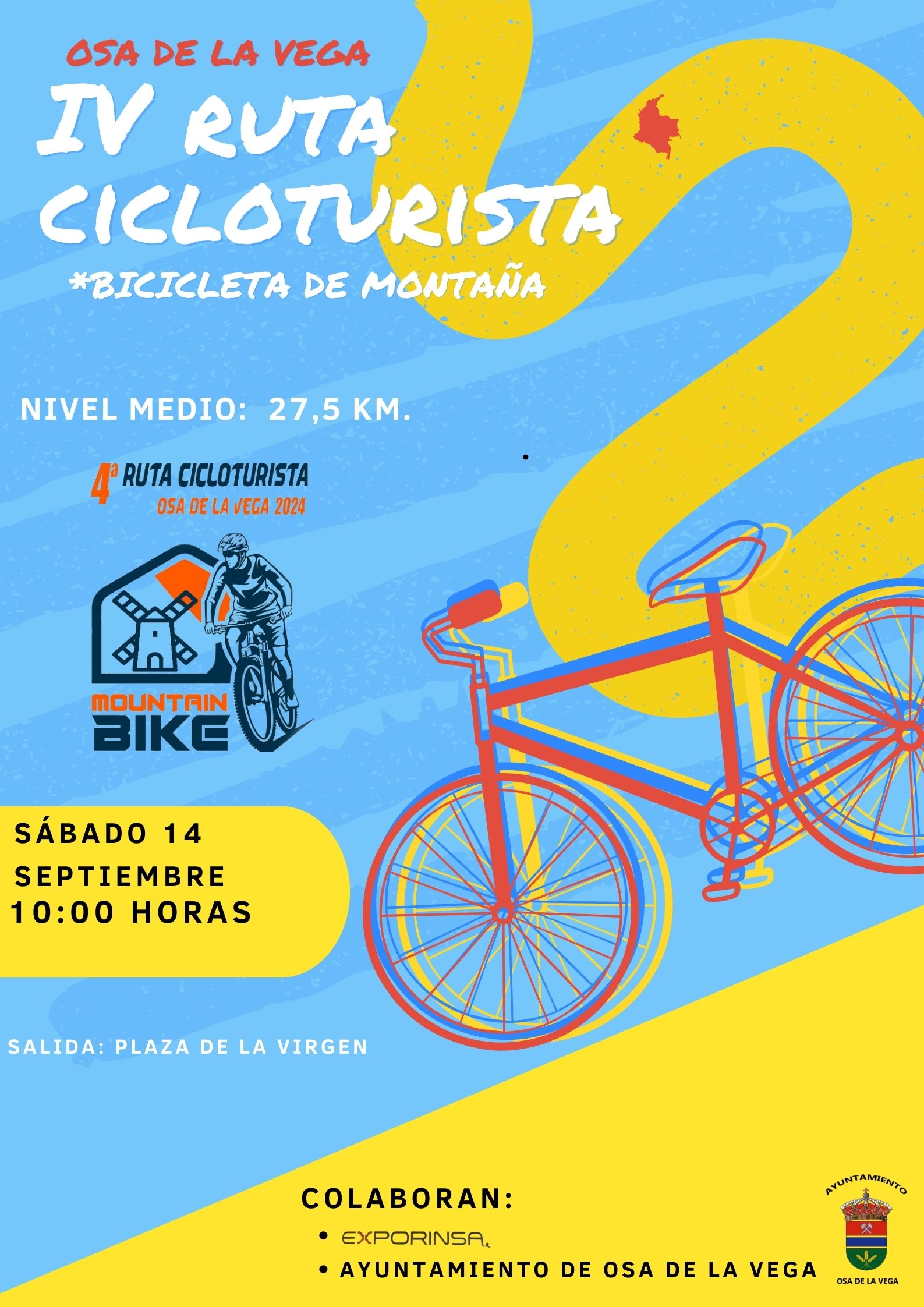Prepara tu casco y tu bici de montaña porque el próximo sábado 14 de septiembre celebraremos la IV Marcha Cicloturista de Osa de la Vega. Con un nivel medio de dificultad, discurrirá por pistas sobre un recorrido de 27,5 kilómetros, partiendo a las 10:00 horas desde la Plaza de la Virgen. Adjuntamos enlaces a wikiloc con recorrido y altimetría.
