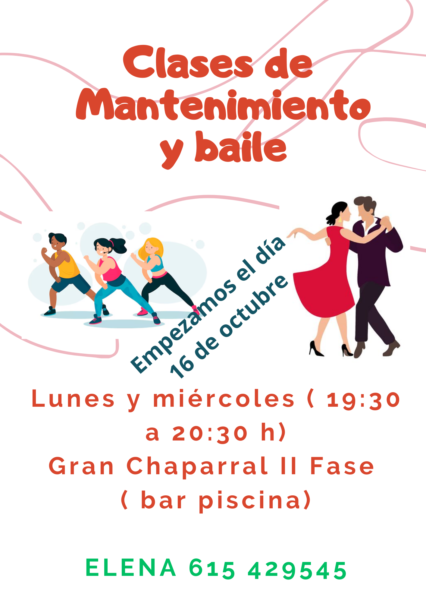 CLASES DE MANTENIMIENTO Y BAILE, en el bar piscina de la Urbanización El Gran Chaparral II Fase.