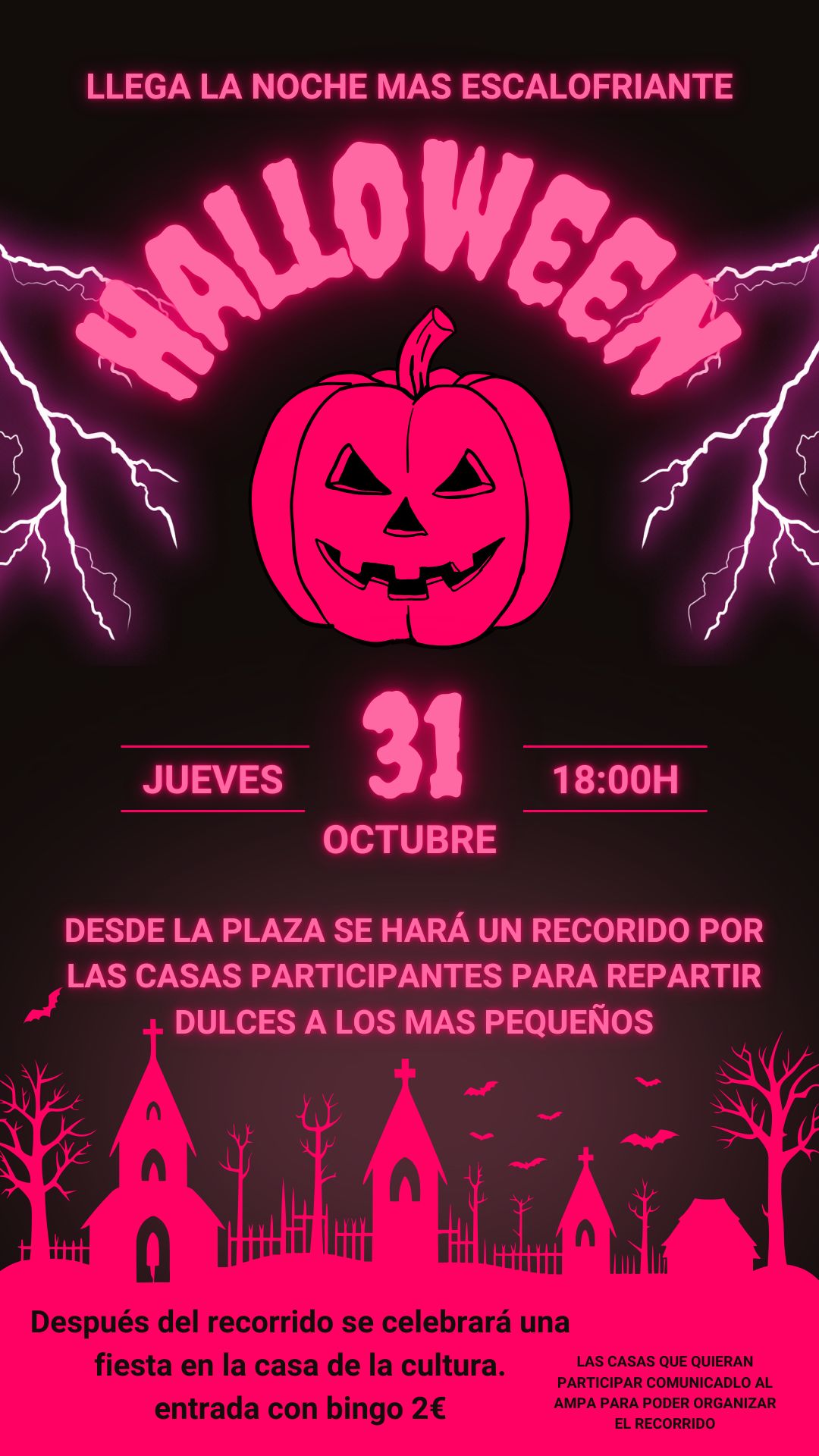 El jueves 31 de octubre a las 18:00h, desde la plaza, se hará el recorrido por las casas participantes. Después del recorrido se celebrara una fiesta en la Casa de la Cultura, con merienda y bingo. Entrada 2€.
