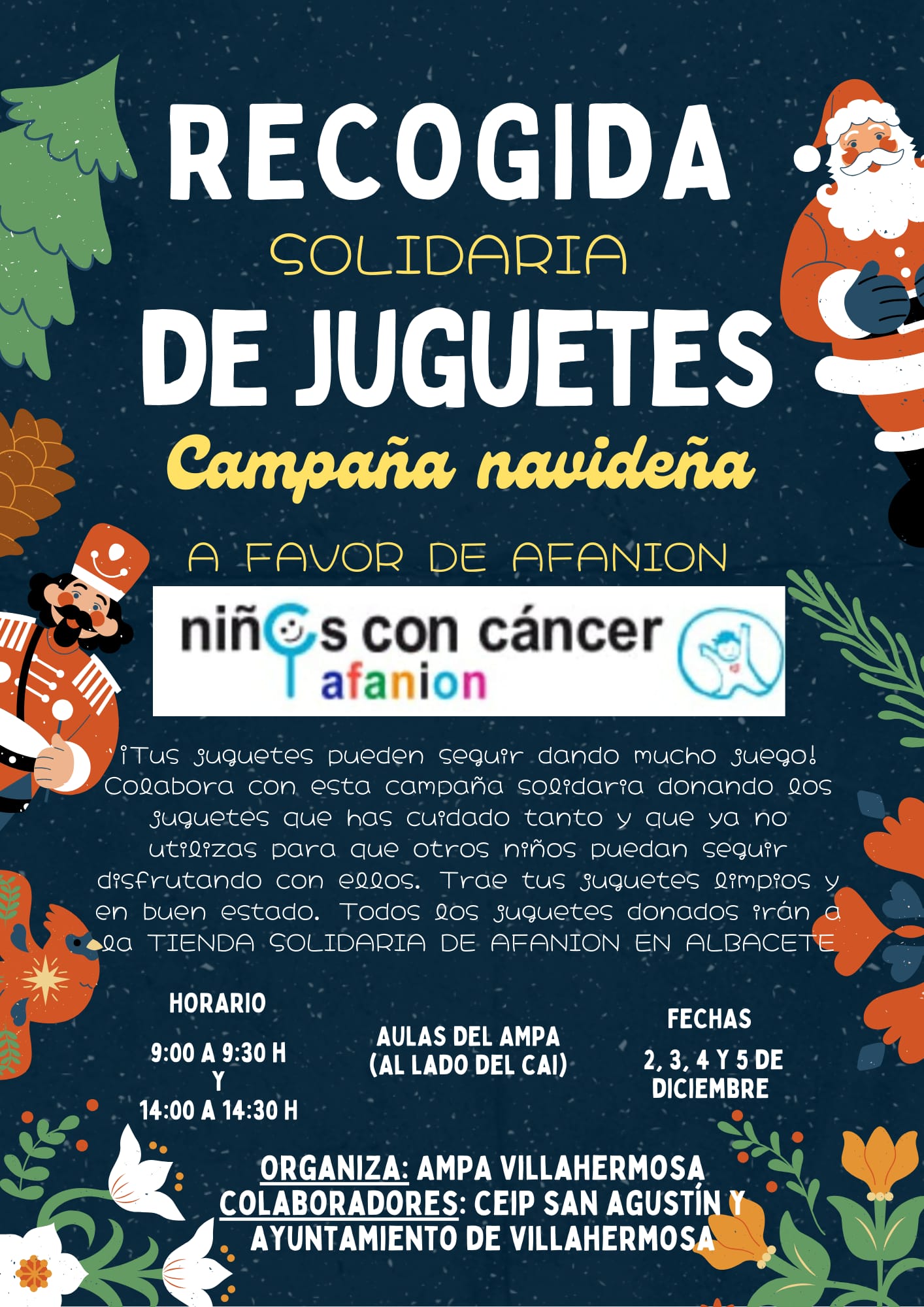 Colabora en la campaña navideña solidaria del AMPA Villahermosa, a favor de AFANION (Asociación de Familias de Niños con Cáncer de Castilla-La Mancha), para que otros niños y niñas puedan seguir disfrutar de ellos.
