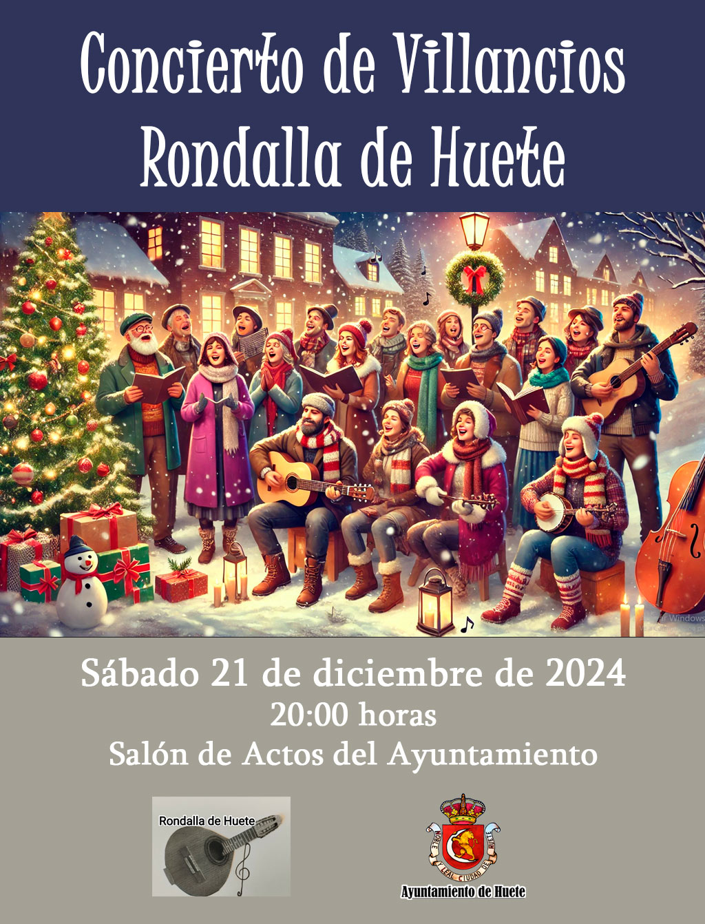 El sábado 21 a las 20:00 horas, en el Salón de Actos del Ayuntamiento, tendrá lugar el tradicional Concierto de Villancicos, que todas las navidades nos ofrece la Rondalla de Huete.